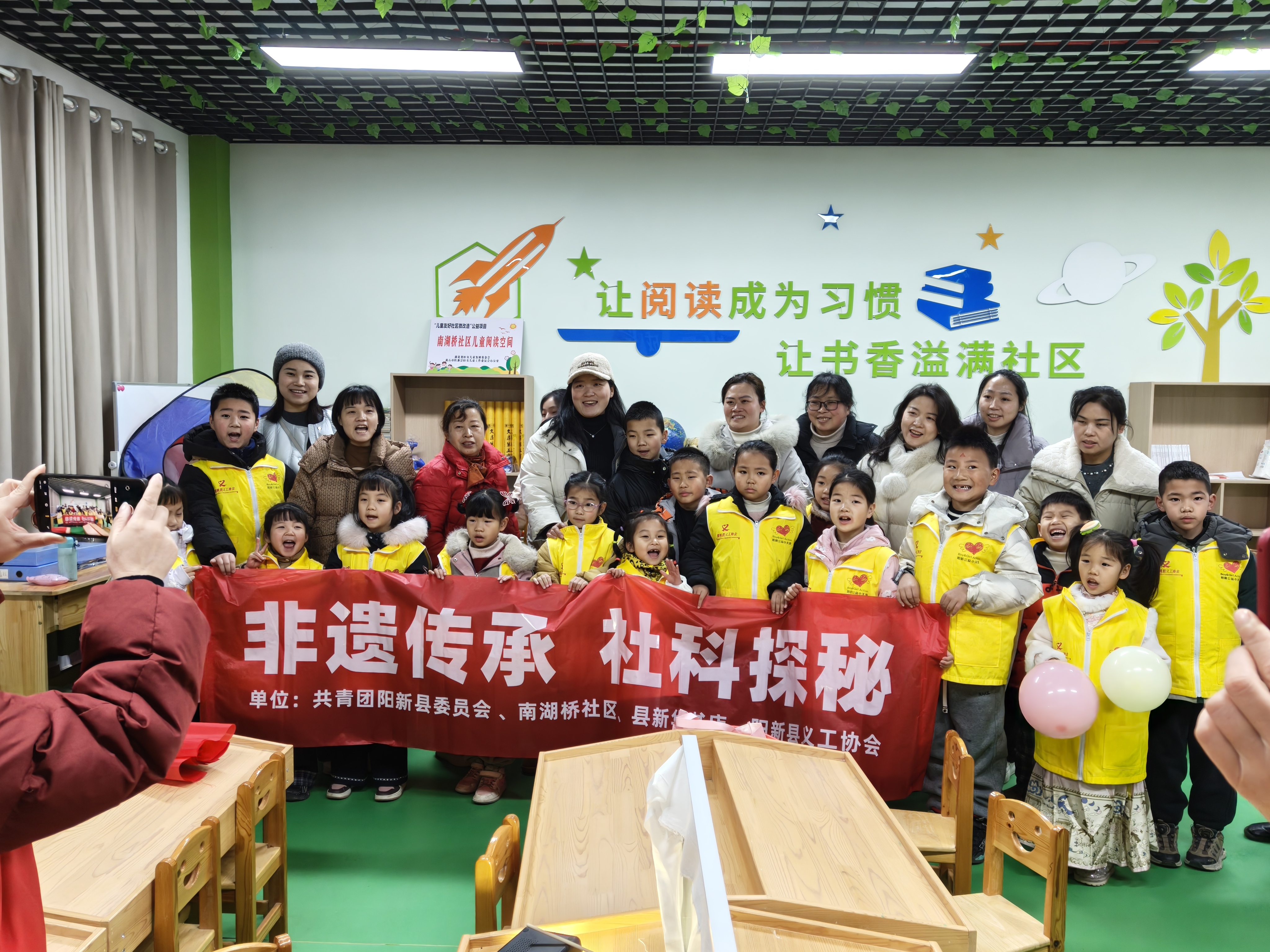 2月7日上午,由阳新团县委、县社科联合主办,南湖桥社区、县义工协会、县新华书店联合承办的“非遗传承·社科探秘”2026年“我们的节日·春节”亲子研学活动,在南湖桥社区三楼社科基地顺利开展。20组亲子家庭齐聚一堂,在非遗体验与科学探究中感受年俗魅力、解锁文化密码。