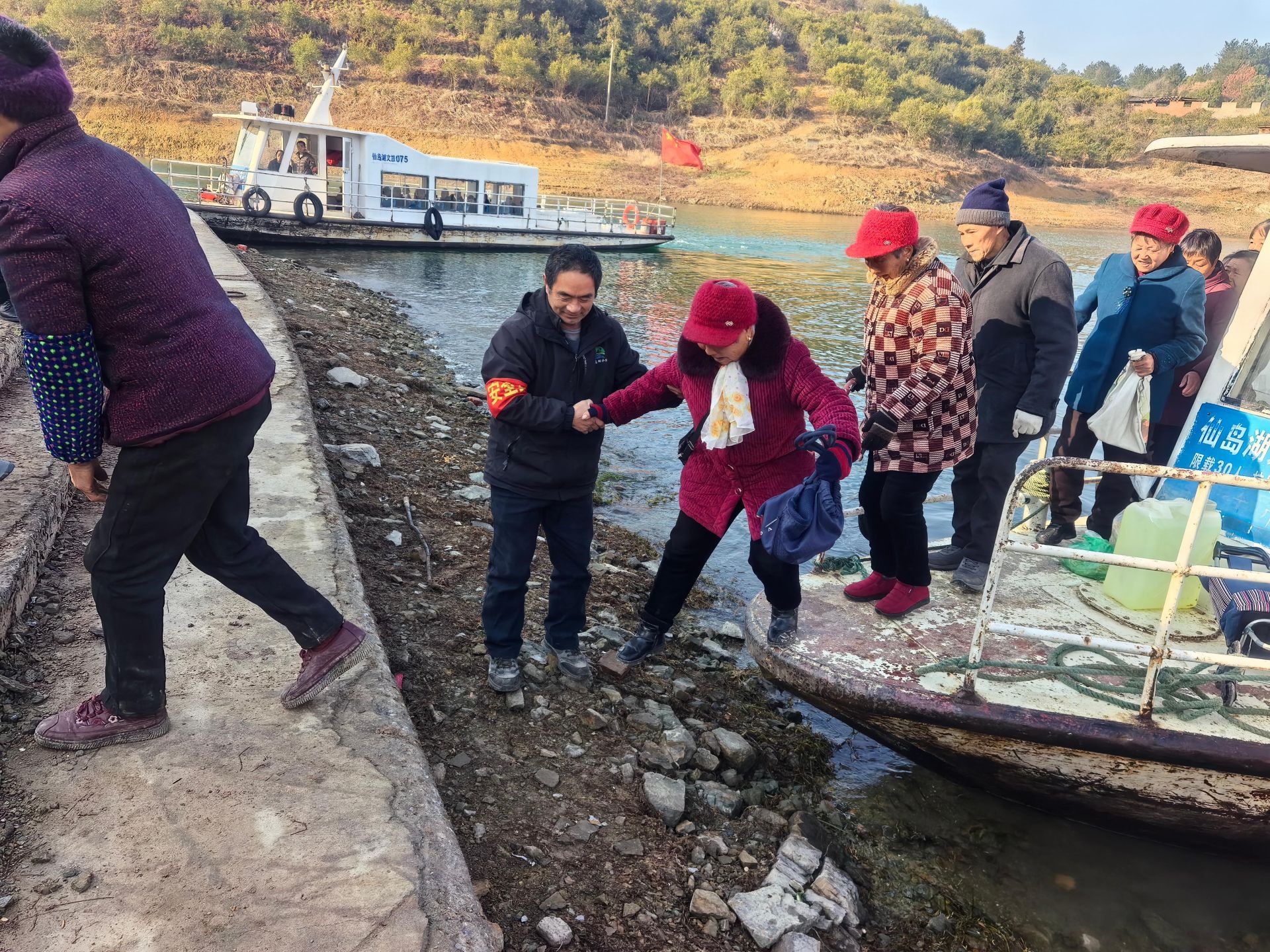 “不仅班次密了,安全感也拉满了!”有着30年驾船经验的王义辉师傅指着船舱里的新设备介绍,今年所有客渡船均加装新能源船舶智能监控系统,航行状态实时监测、安全隐患提前预警;每个码头都有安全员与志愿者值守,严格排查易燃易爆物品,筑牢水上安全防线。“免票坐船还配安全员,家里老人走亲戚既不花钱又放心,咱们做子女的也少了牵挂,这政策太暖心了!”谷才村村民王桂花的话道出了大家的心声。