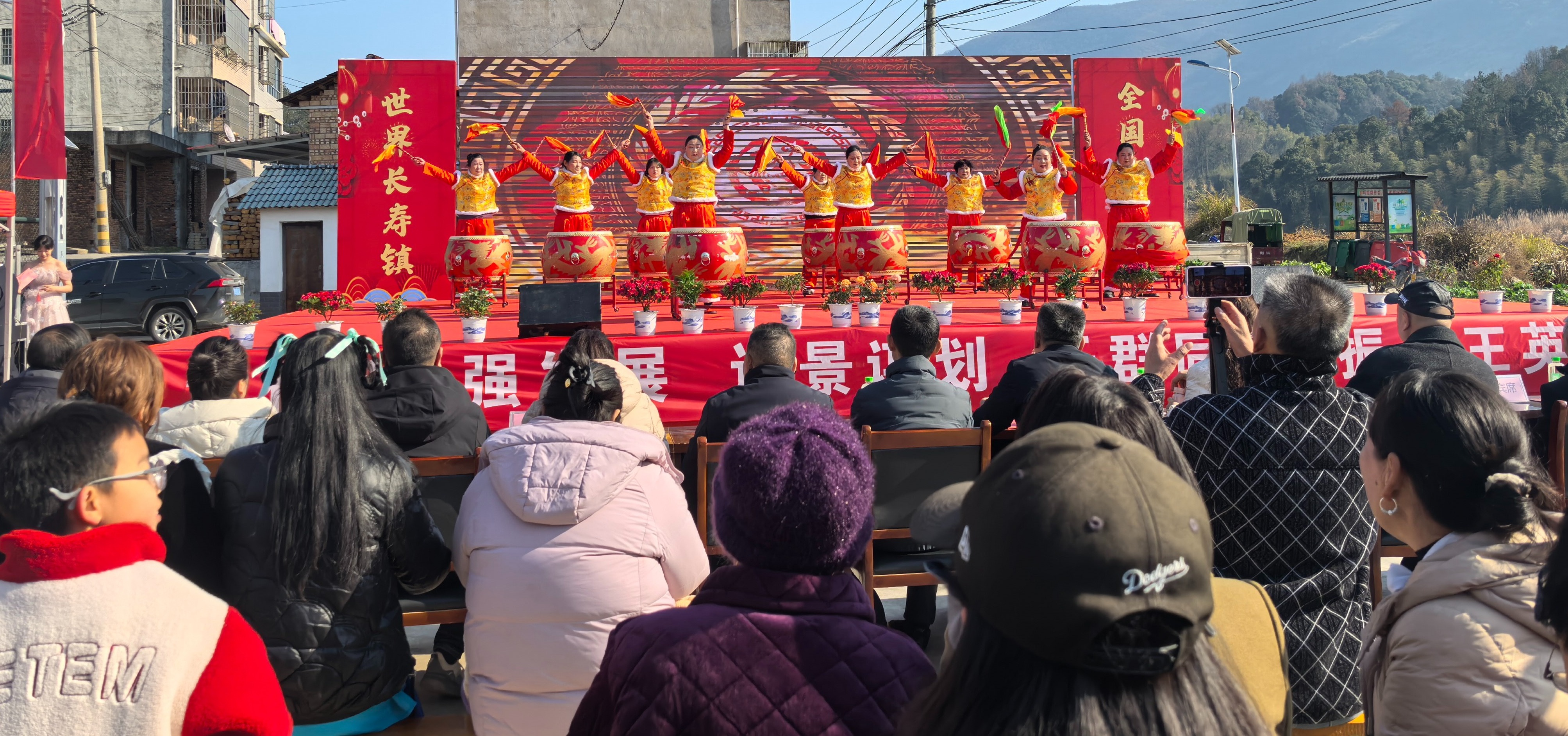 2月8日下午,王英镇隧洞村文体广场热闹非凡,由鲁山、新屋、谷贞、隧洞四村联合举办的2026年“村晚”文艺演出在这里欢乐开演。演出以“开门红”开场鼓拉开序幕,吸引了众多村民驻足观看。