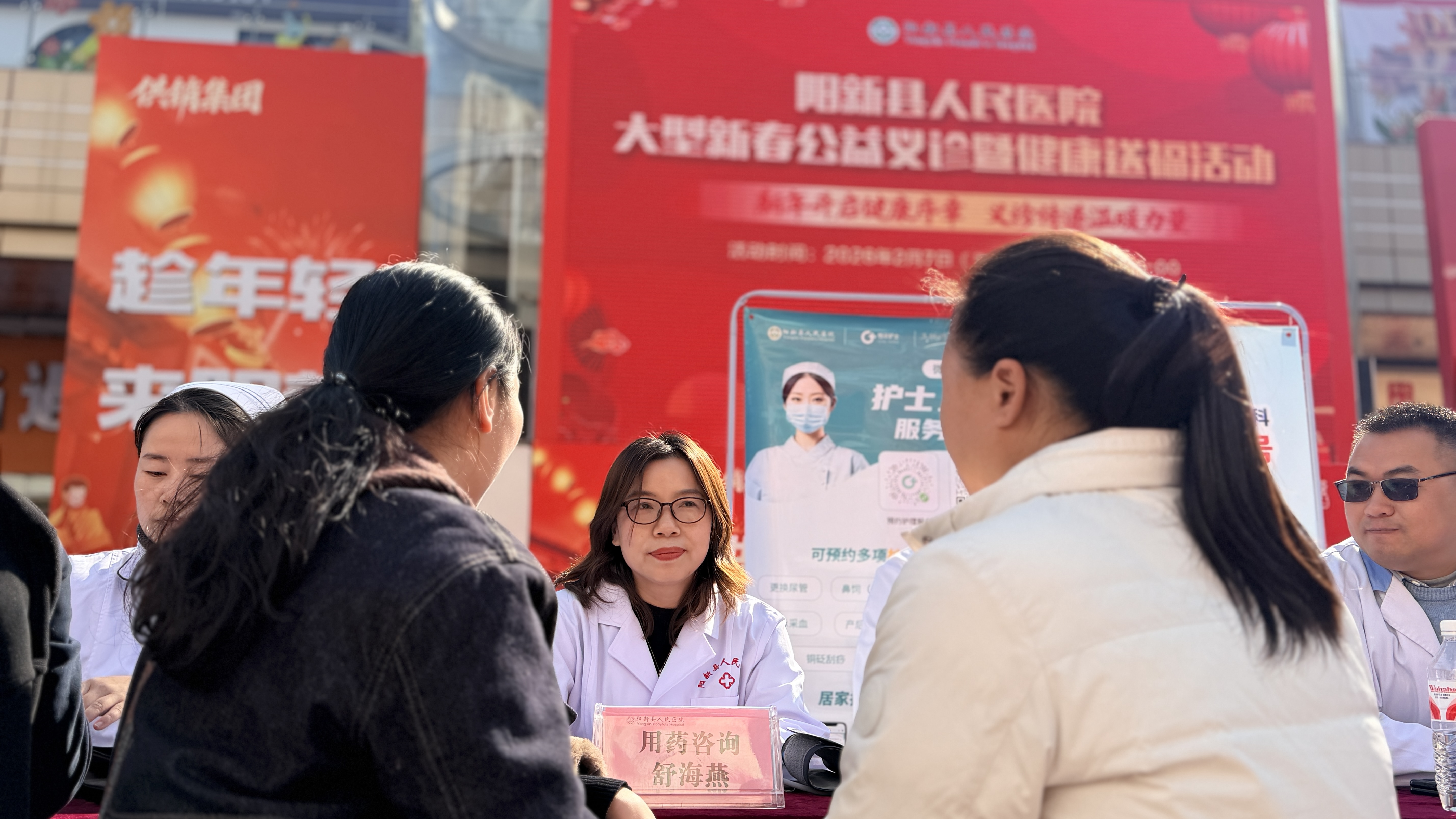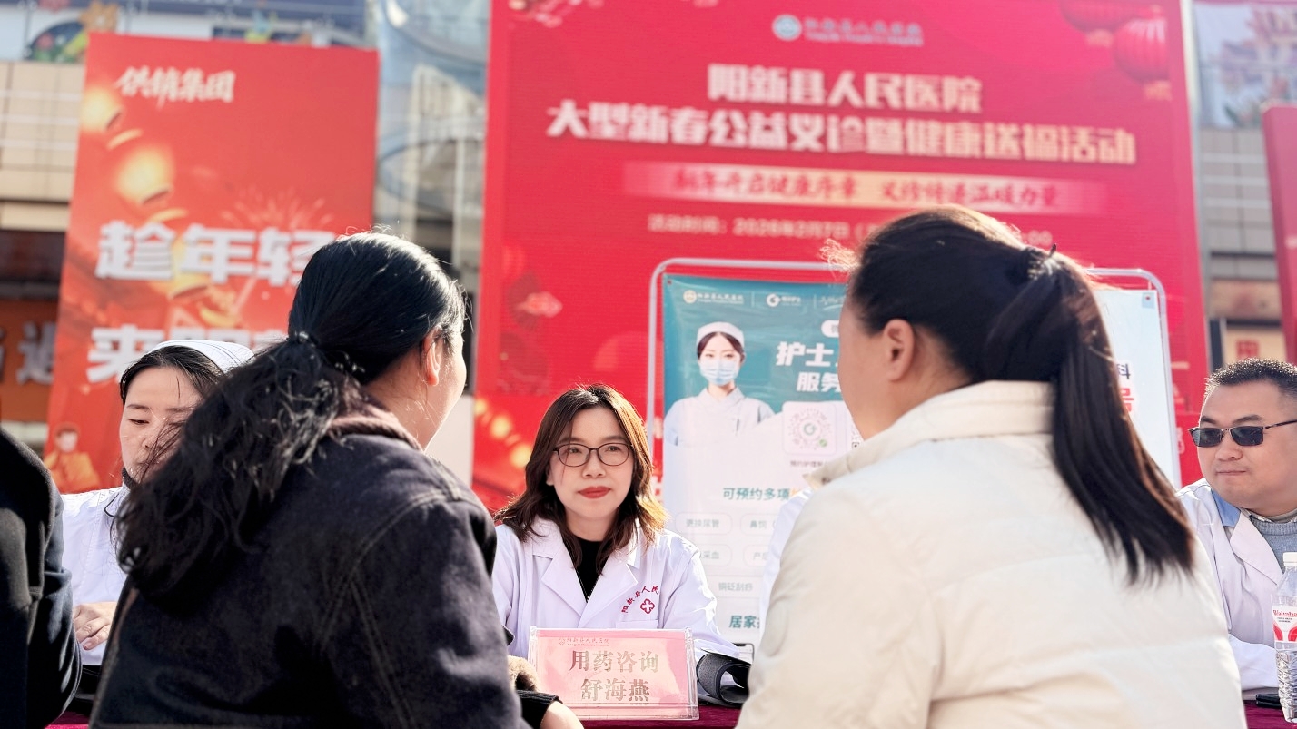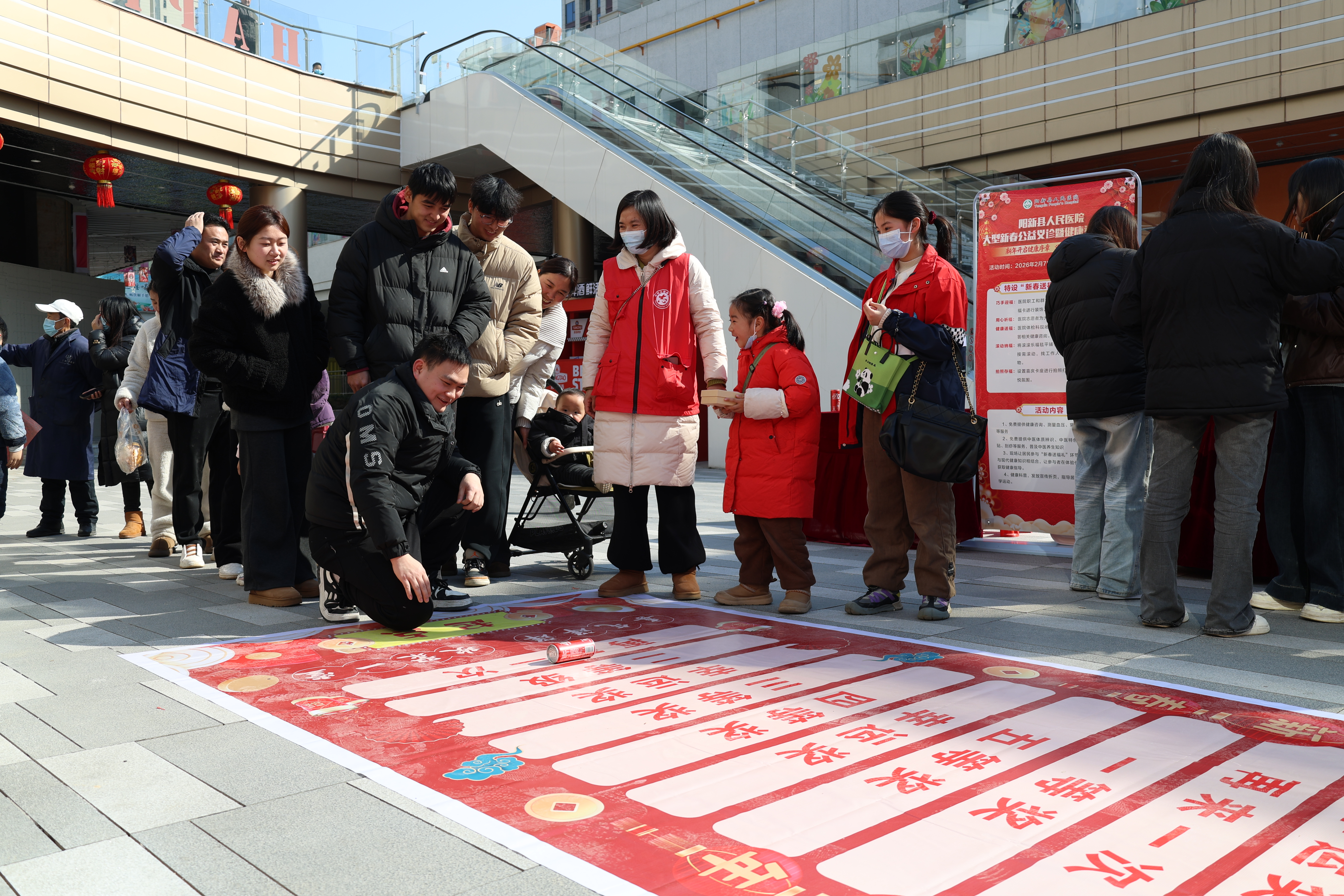 2月8日下午,阳新县人民医院组织多科室专家团队,走进铜锣湾金街中心广场,为居民提供面对面的新春健康义诊服务。