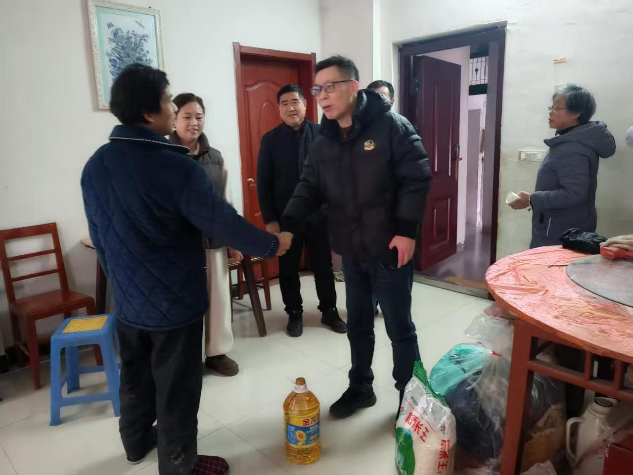 2月9日上午,阳新县市场监督管理局联合县品牌家居建材商会前往双港社区,开展春节走访慰问活动。 慰问组一行先后在社区集中发放慰问物资,并深入居民家中,与群众面对面亲切交谈,详细了解日常起居与生活状况,为大家送上大米、食用油等慰问品和新春祝福,用实际行动把关怀与温暖送到群众家门口、心坎上。 此次活动既传递了节日温情,也拉近了部门、商会与社区群众的距离,充分展现了市监部门心系民生、服务基层的责任与担当。 通讯员:孟婷霄 责编:周子宸 审核:朱兰青