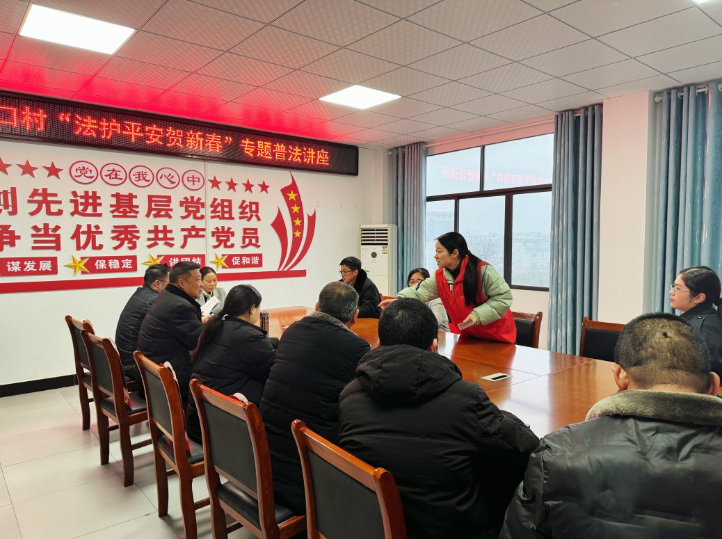 村委会大院里,红灯笼高悬,年味十足的普法宣传活动正热闹开启。司法所所长张奕芸围绕村民关心的邻里纠纷、婚姻家庭、电信诈骗等热点问题,用“唠家常”的方式解读民法典、防范电信网络诈骗条例等法律法规,将晦涩法条转化为鲜活案例,让村民听得懂、能领会、用得上。“遇到陌生人让转账,一定要先打电话核实!”“借钱给别人,记得写好借条”,工作人员的贴心提醒赢得阵阵掌声。活动现场为村委干部提供“一对一”法律服务,细致解答各类法律困惑,以法治赋能基层治理,为乡村振兴注入坚实法治力量。