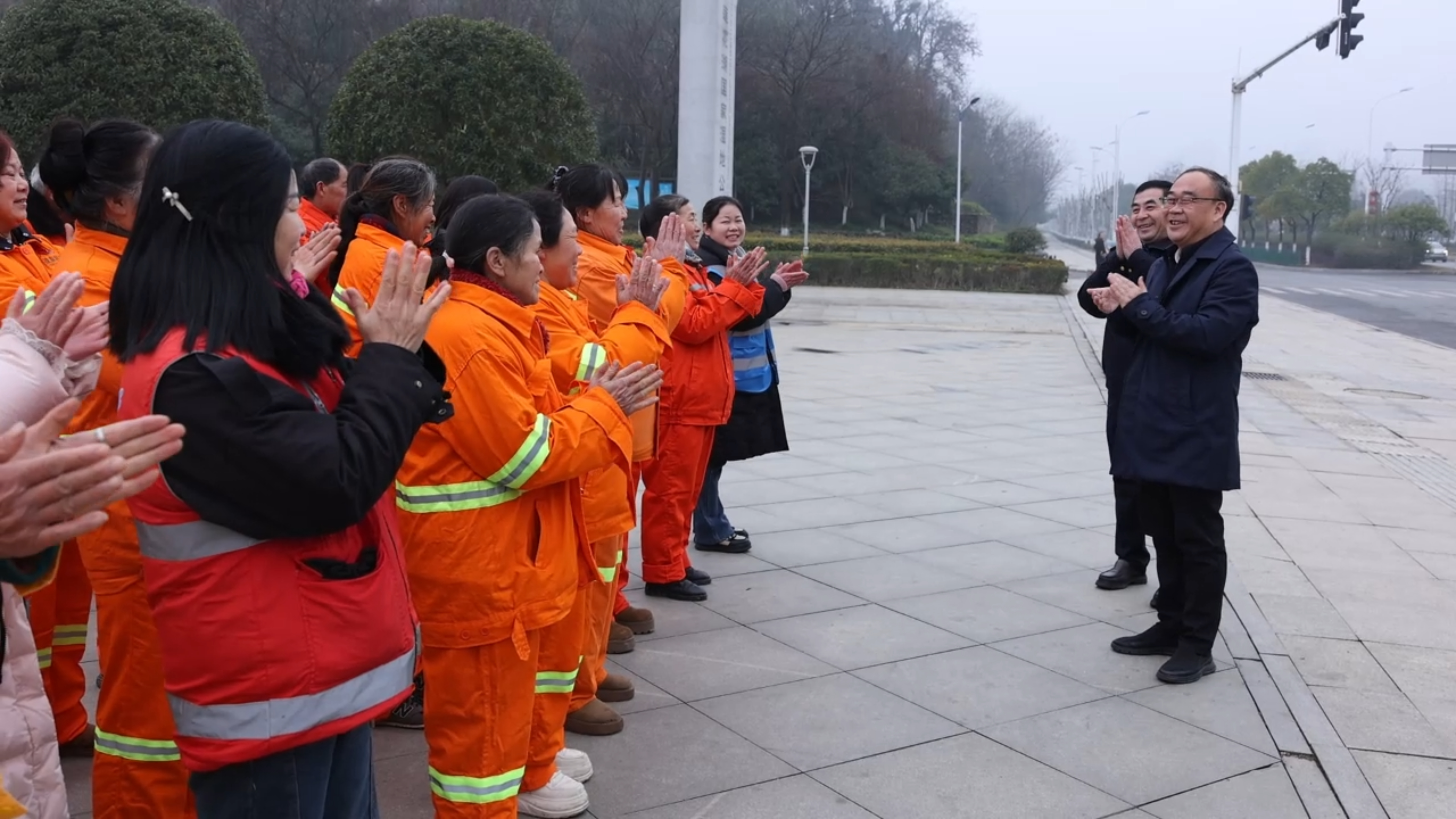 随后,杨波来到莲花湖国家湿地公园看望环卫工人。他对环卫工人为维护城市整洁优美的环境所付出的辛勤劳动表示感谢,充分肯定他们为提升阳新市容面貌作出的贡献,并为大家送上节日祝福。杨波表示,环卫工人是城市的“美容师”,希望大家继续发扬爱岗敬业精神,让市民在洁净环境中欢度新春。