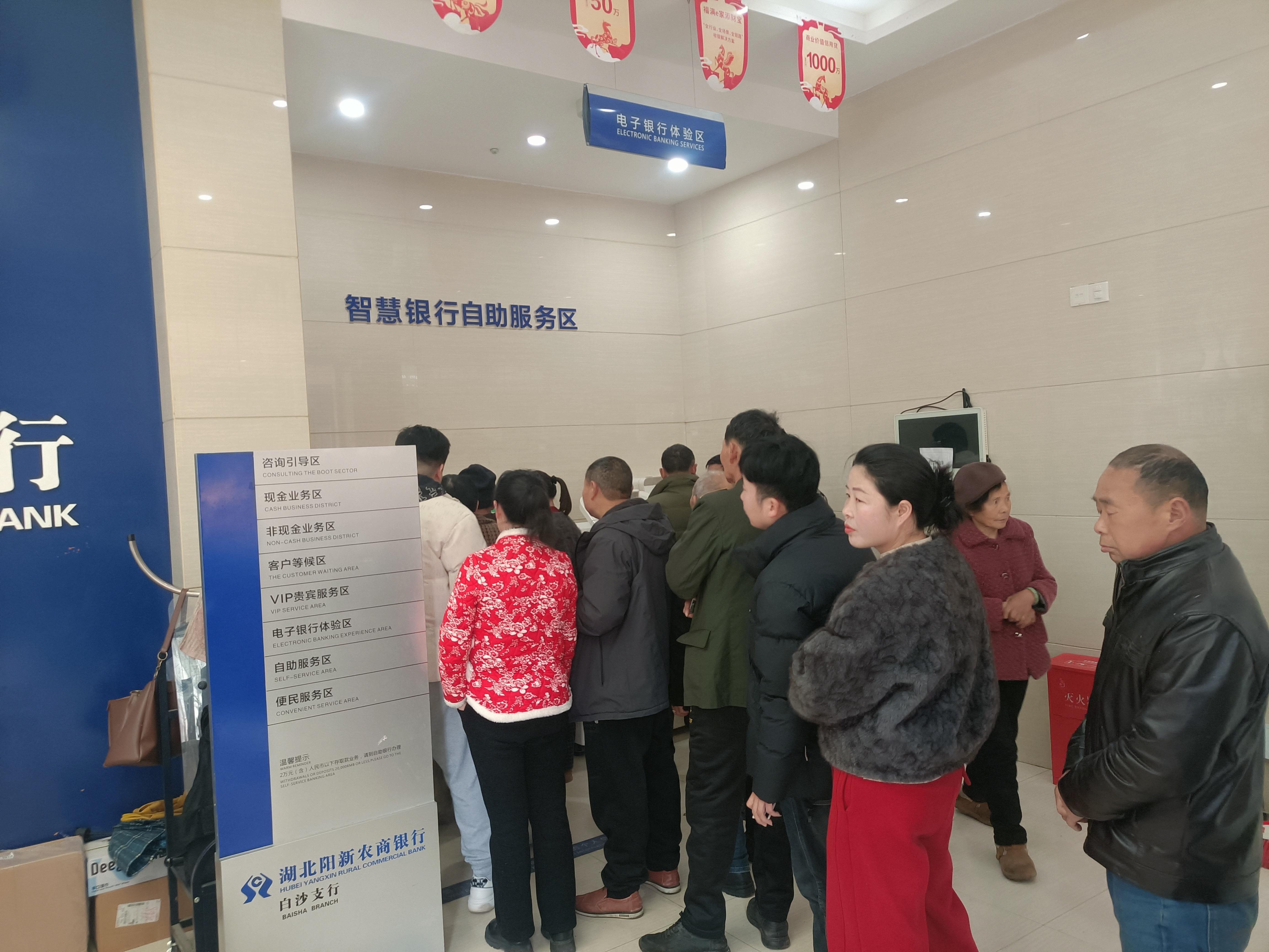 走进镇农商行、邮储银行、农业银行等金融网点,储户正有序排队取现金。潘祥村村民马香说:“排了半个多小时的队,只为了取到现金,准备大年初一给来拜年的外孙发红包。”