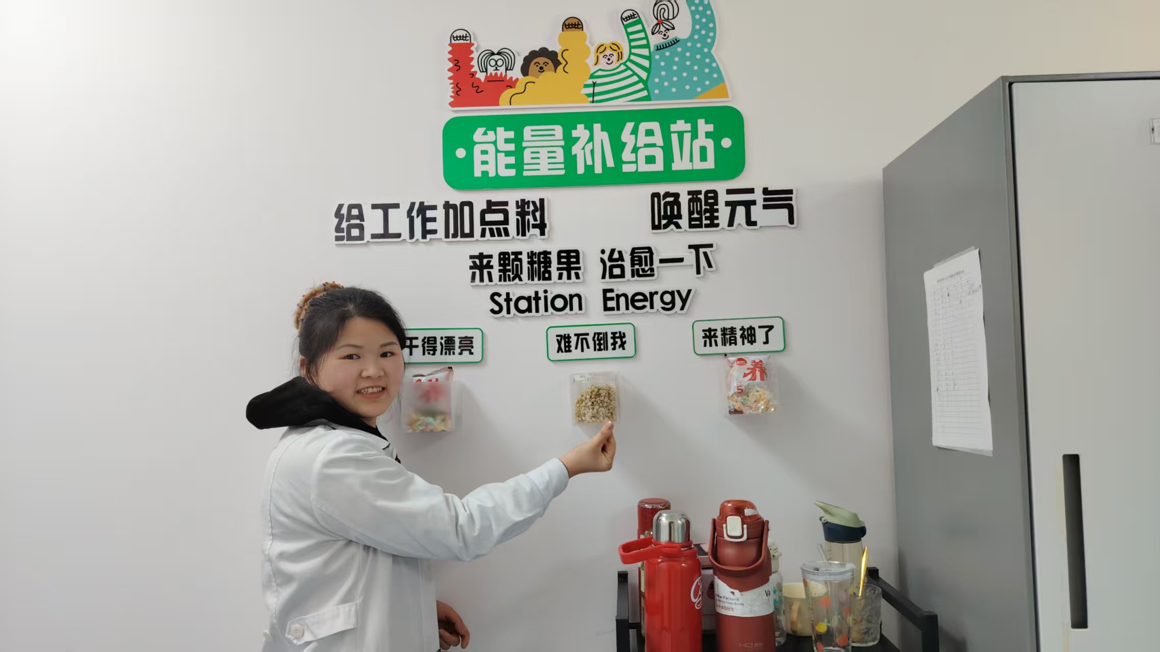 补给站虽小,却暖意满满、年味十足。休息时,医护同仁围坐包饺子,欢声笑语驱散疲惫;墙面点缀新春装饰,糖盒里的糖果、保温箱中热气腾腾的饺子,承载着科室的牵挂与关怀。忙碌间隙,护士们可在此稍作休憩,一口温热饺子、一颗香甜糖果,既能补充能量,也能在舌尖感受“家的味道”,舒缓压力、重拾节日喜悦。