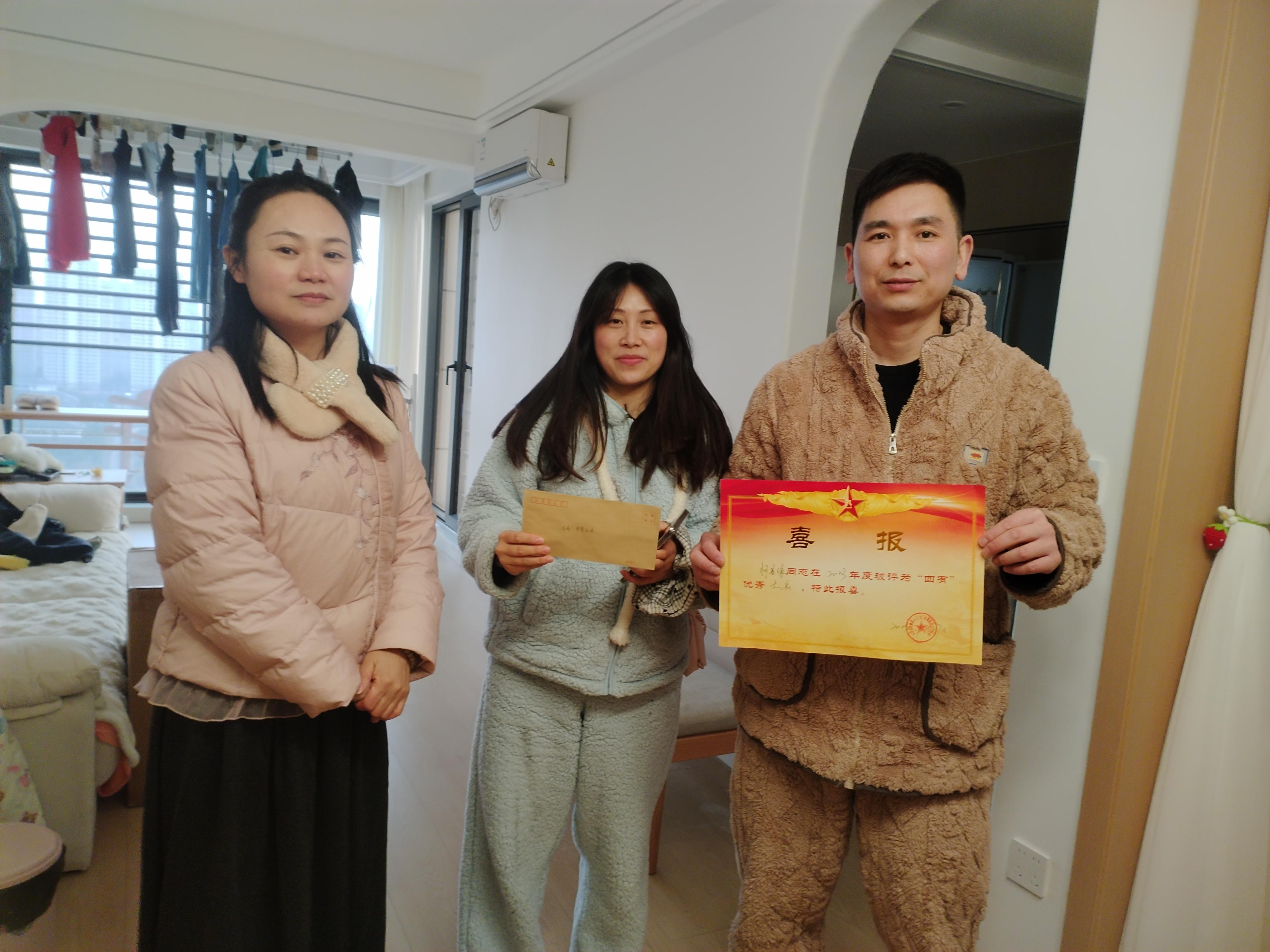 "孩子在部队立功,我们全家都感到光荣!"接过社区工作人员递来的"四有"优秀士兵喜报,现役军人姜杉的父母脸上洋溢着自豪的笑容。社区工作人员先后来到荣获2025年度"四有"优秀士兵柯昌海、姜杉两名现役军人家中,庄重地将喜报送到军属手中,并为他们送上新春祝福与慰问金。工作人员详细了解军属的生活状况和身体情况,感谢他们为国防事业培养了优秀人才,希望他们继续鼓励子女在军营安心服役、再立新功。