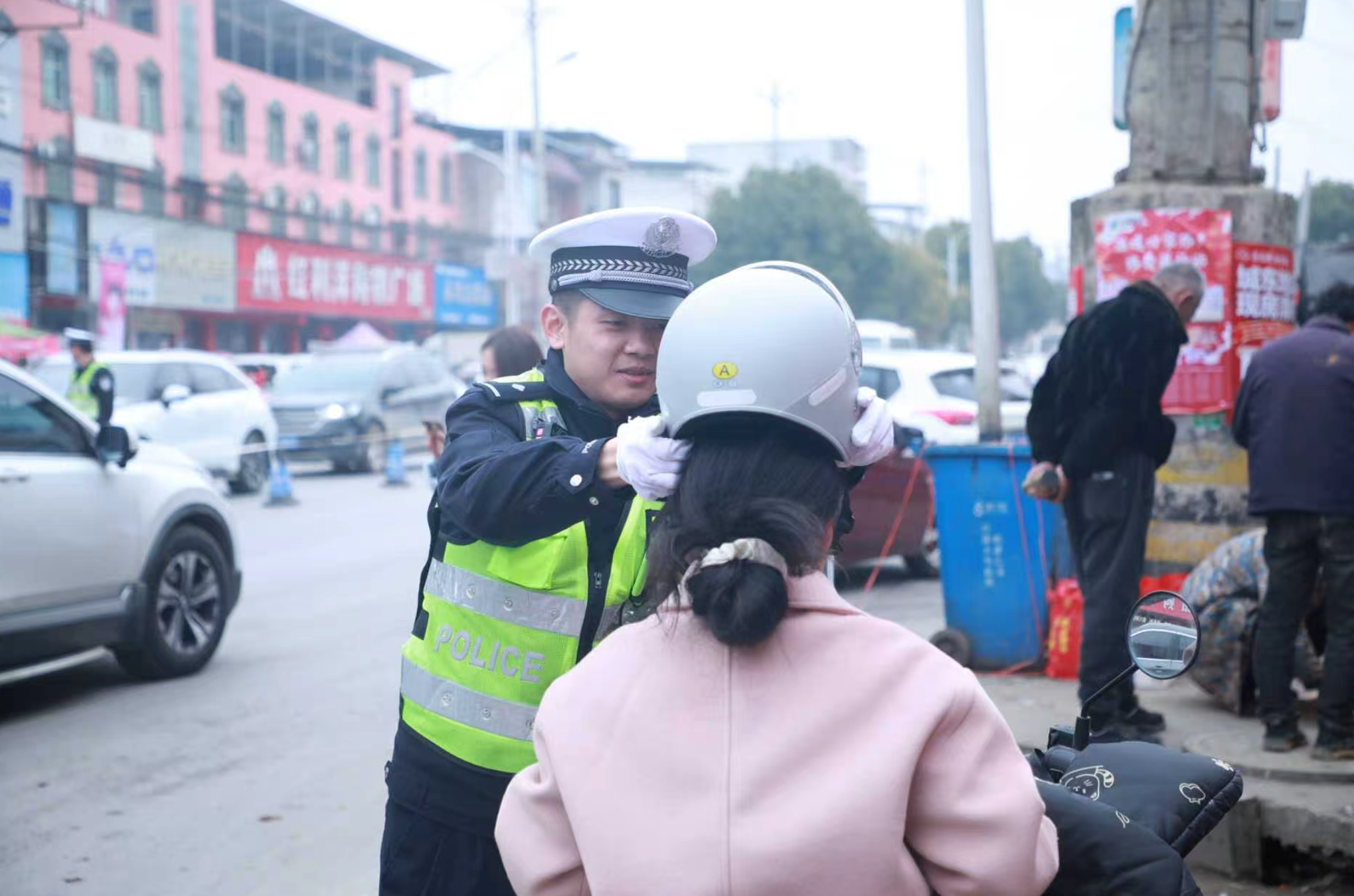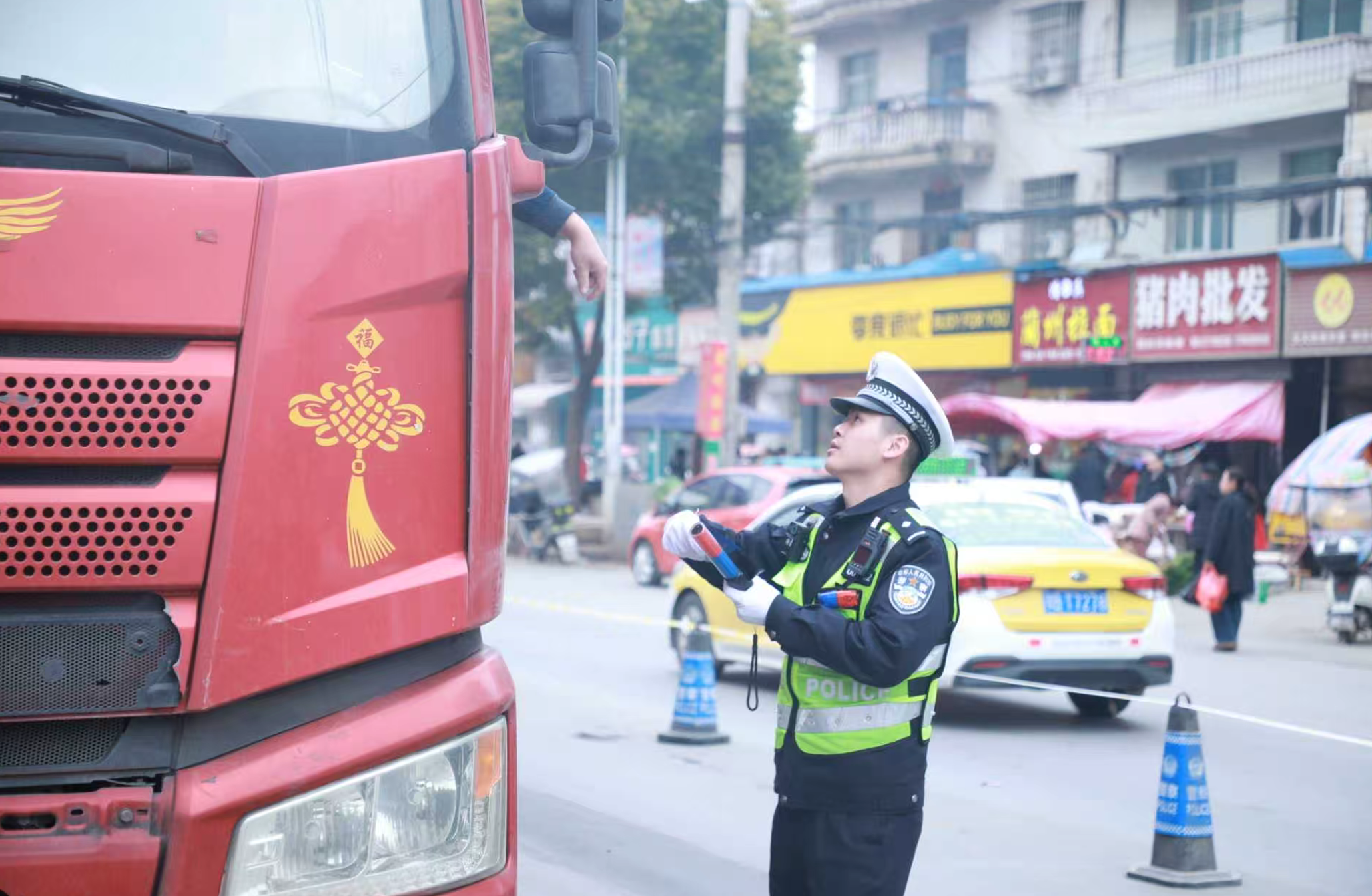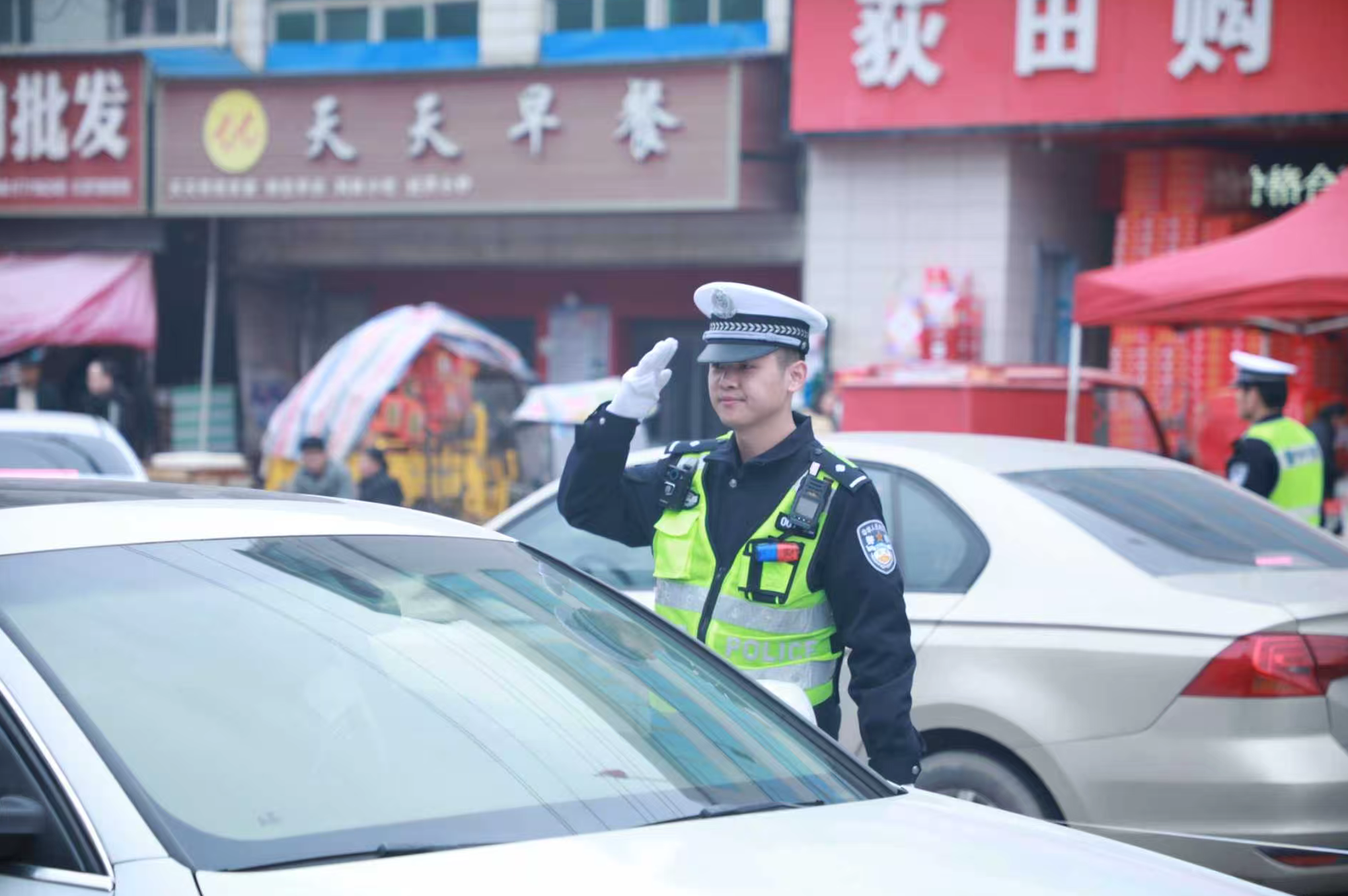 话音刚落,对讲机里便传来了同事的巡逻调度指令:“浮屠镇主路段车流量激增,需增派人员疏导。”肖振宏立刻整理好执勤装备,迅速登上警车前往执勤路段。