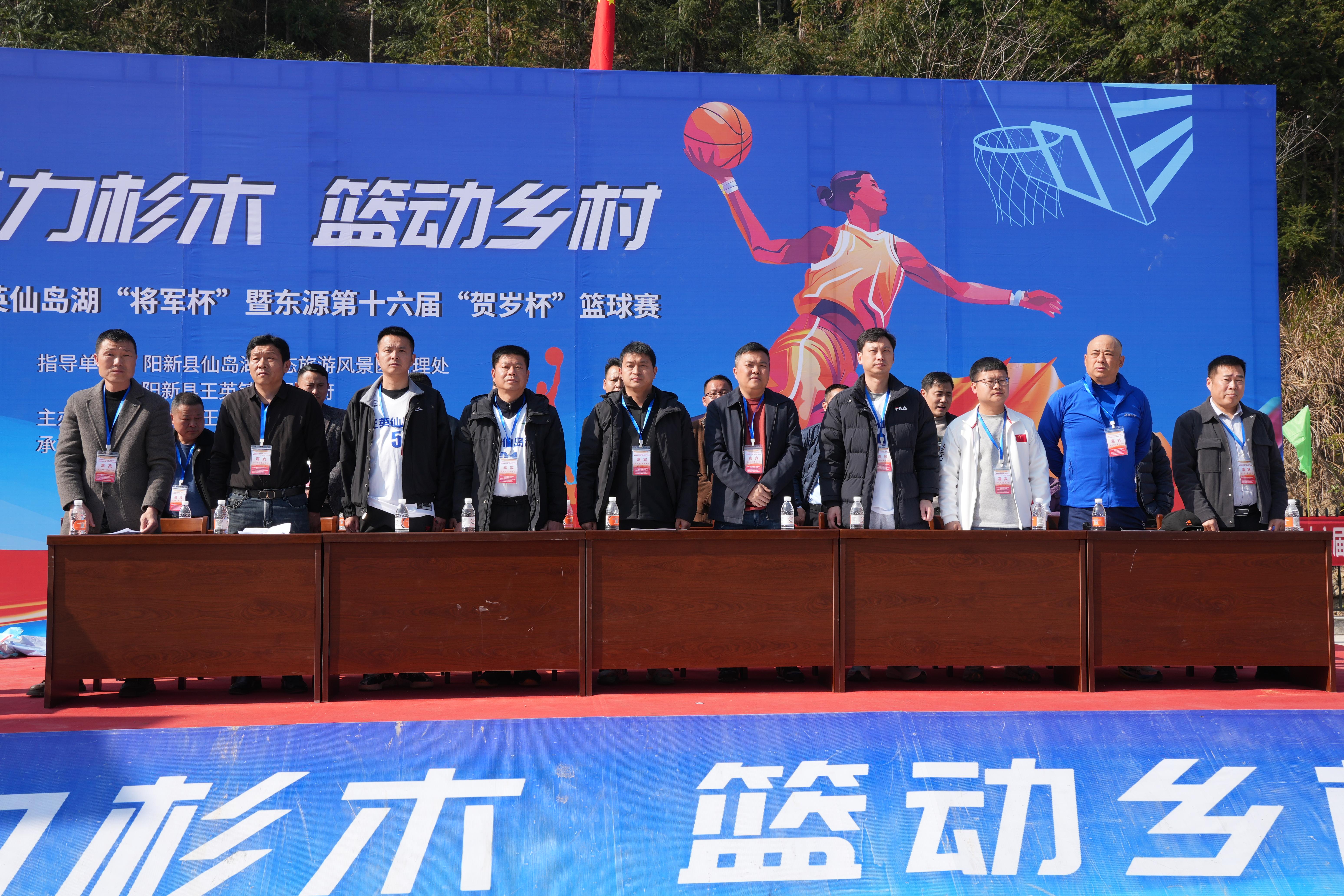 甲辰辞旧岁,丙午迎新春。2月14日上午 ,尽管冬日寒意未消,但阳新县王英仙岛湖杉木村新农村文化广场却是一片热气腾腾、人声鼎沸的热闹景象。备受期待的阳新县王英仙岛湖“将军杯”暨东源第十六届“贺岁杯”篮球赛在这里盛大开幕。十二支本土乡村球队齐聚一堂,以球会友,用激情与汗水,在农历新年来临之际,点燃了乡土之间的运动热潮。