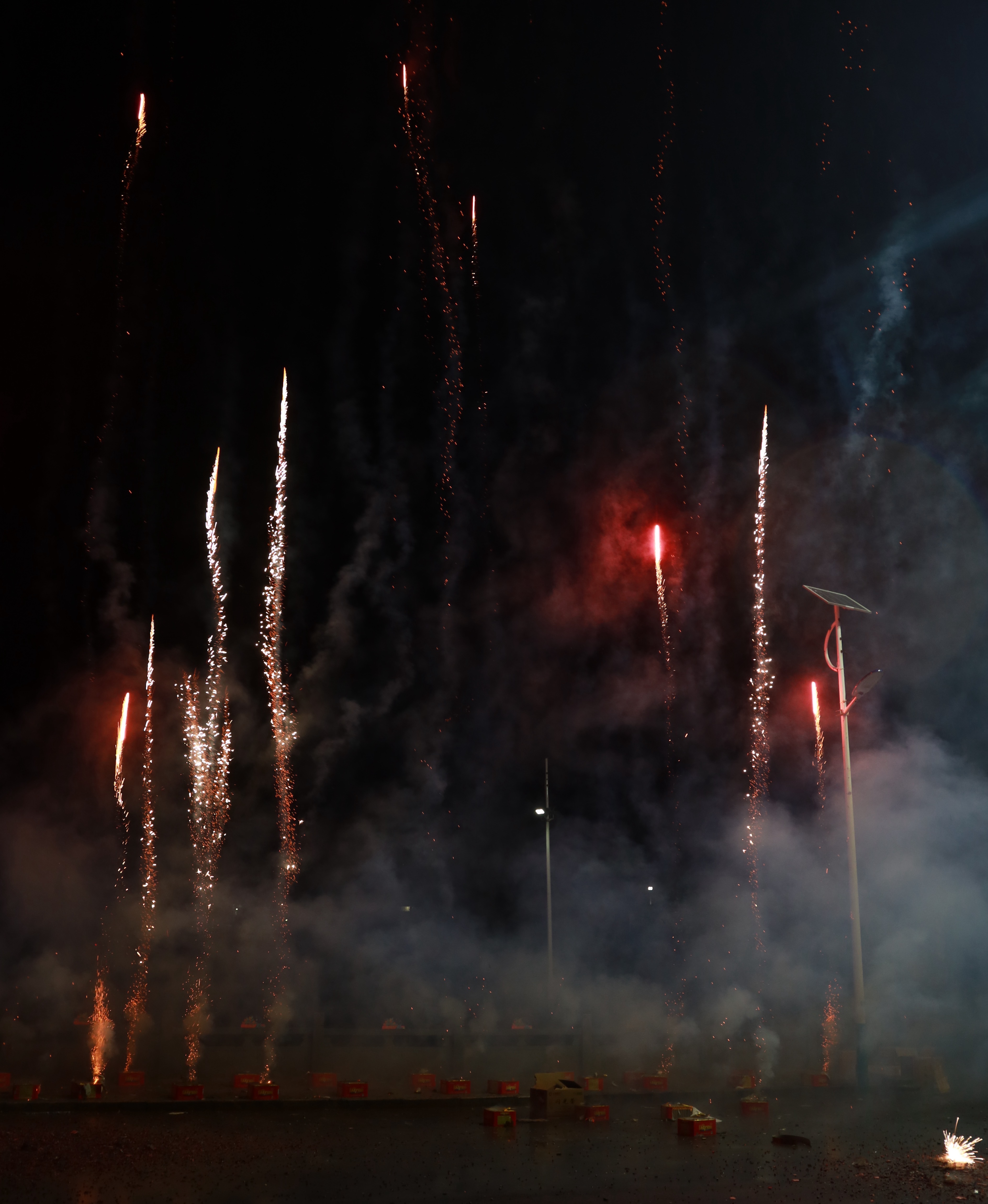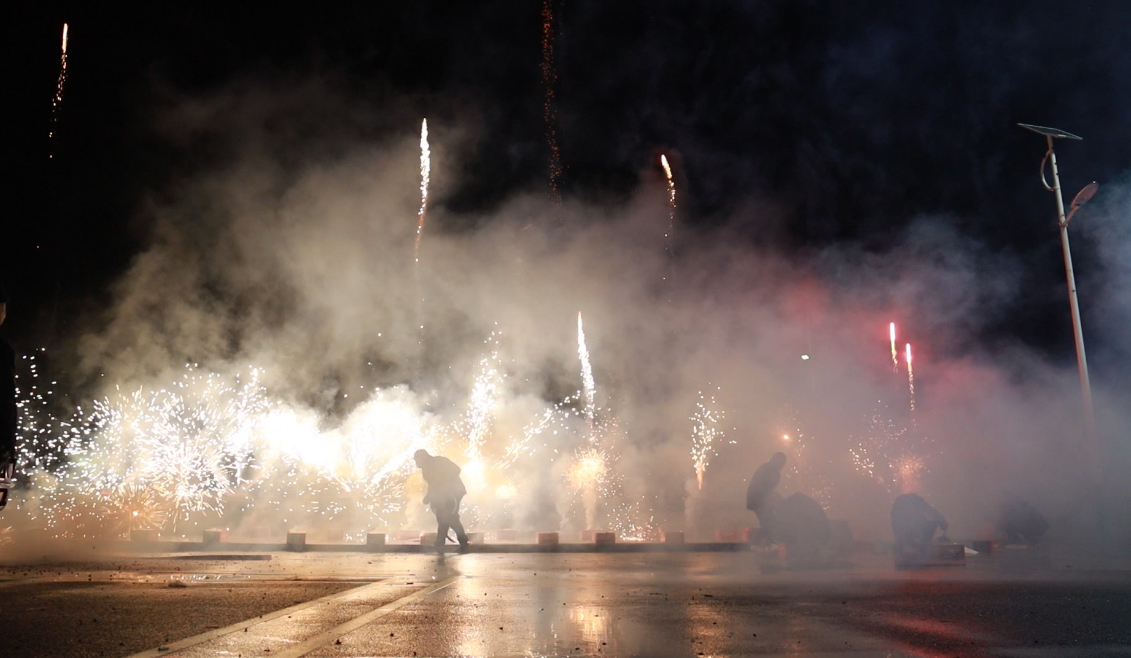 晚上7时许,文化礼堂广场上,璀璨的烟花呼啸着划破夜空,在夜幕中绽放出绚丽的花朵。震耳欲聋的爆竹声持续了近30分钟,将除夕的喜庆气氛推向了高潮。