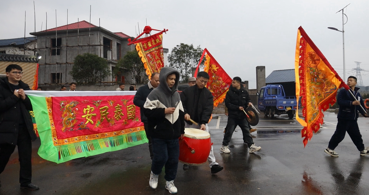 热闹的锣鼓声不仅是节日的点缀,更是一场温情传递的前奏。下午6时许,以90后陈祖明为代表的一群年轻人,敲着锣鼓、扛着先祖留下的湾组牌匾,浩浩荡荡地穿行在村巷中。他们此行有一个特殊的使命:为湾里袁翠兰等50余位70岁以上的老人送去新春的敬老红包。