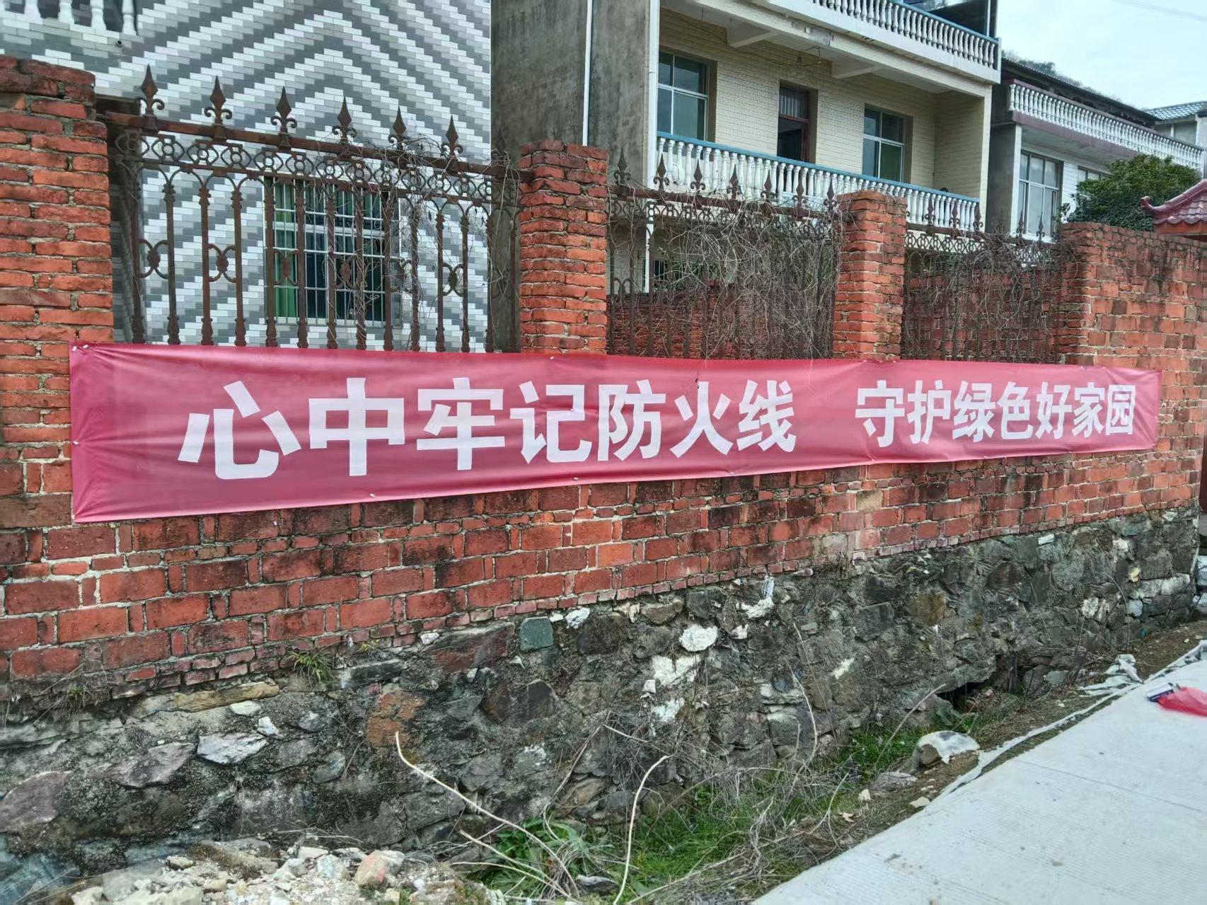森林防火,宣传先行,春节前期村里在进村主要路口,悬挂“进山不带火、野外不吸烟”“心中牢记防火线、守护绿色好家园”“防火意识记心间,新春祥和乐无边”等醒目的宣传标语。同时,为扩大宣传覆盖面,针对大年初二“清香”日的户主,村里将流动森林防火宣传车开到家门口,给户主和客人面对面讲解在林区森林防火的重要性和严重性。切实让森林防火,人人有责的理念深入人心。