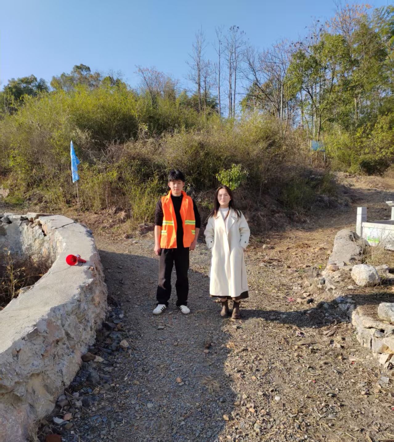 上午十点到下午五点,龙港镇的山路上时常会响起清脆的喇叭声。“我是龙港人,不带火星到祖坟;谁烧山、谁坐牢!”来自湖北恩施的90后干部张涛骑着电动车,载着便携喇叭穿梭在山间小道,请当地人录的方言版防火提示反复播放。他的脸颊被正午的烈日晒得通红,后背早已被汗水浸透,却依然坚持每小时在包片辖区内巡查一次。
