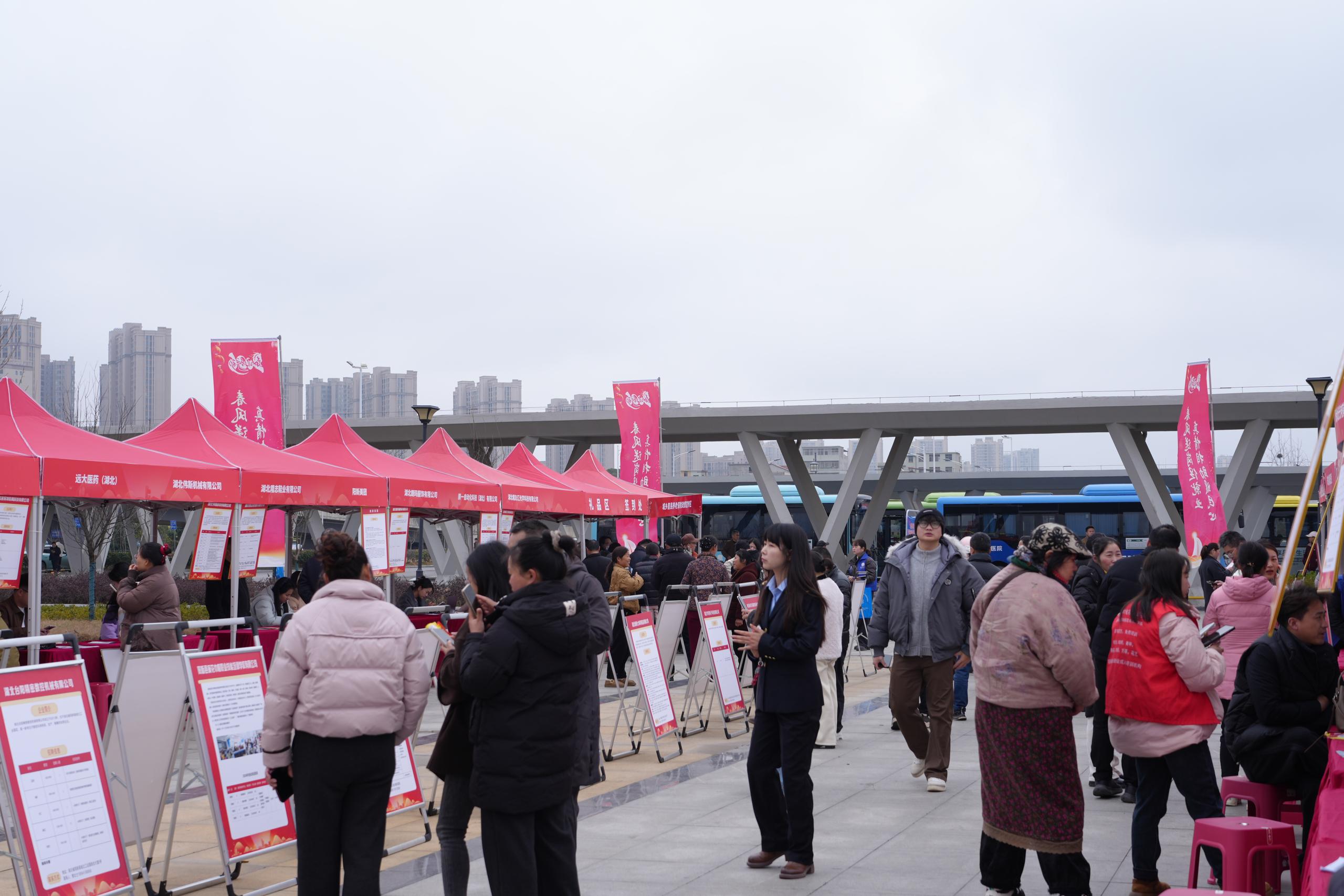25日,阳新县2026年“春风行动▪就业援助季”返乡就业创业服务专场招聘会在火车站广场举行。