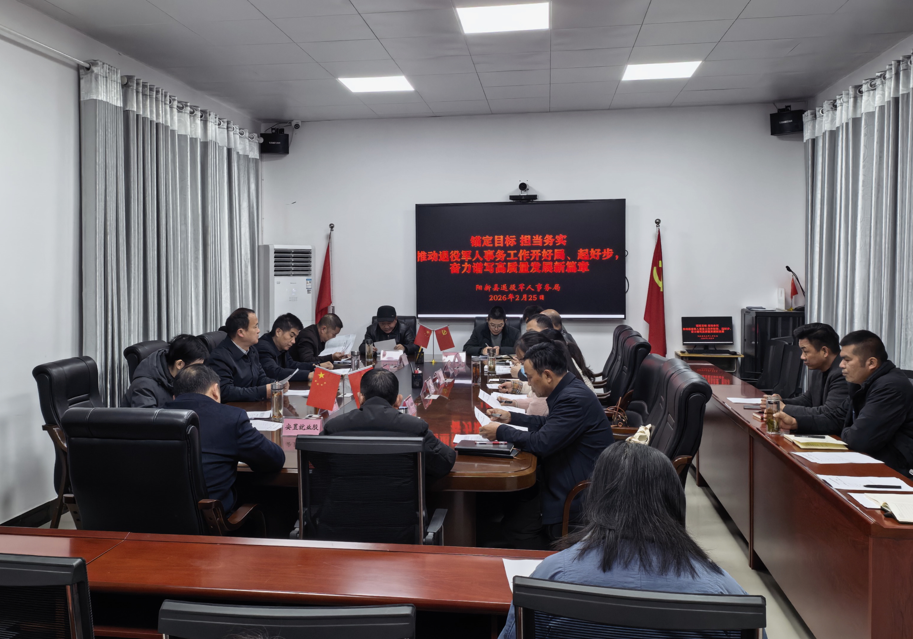 25日上午,县退役军人事务局召开新春第一会,总结2025年工作成效,分析当前形势任务,部署2026年重点工作,吹响实干争先、护航尊崇的奋进号角。