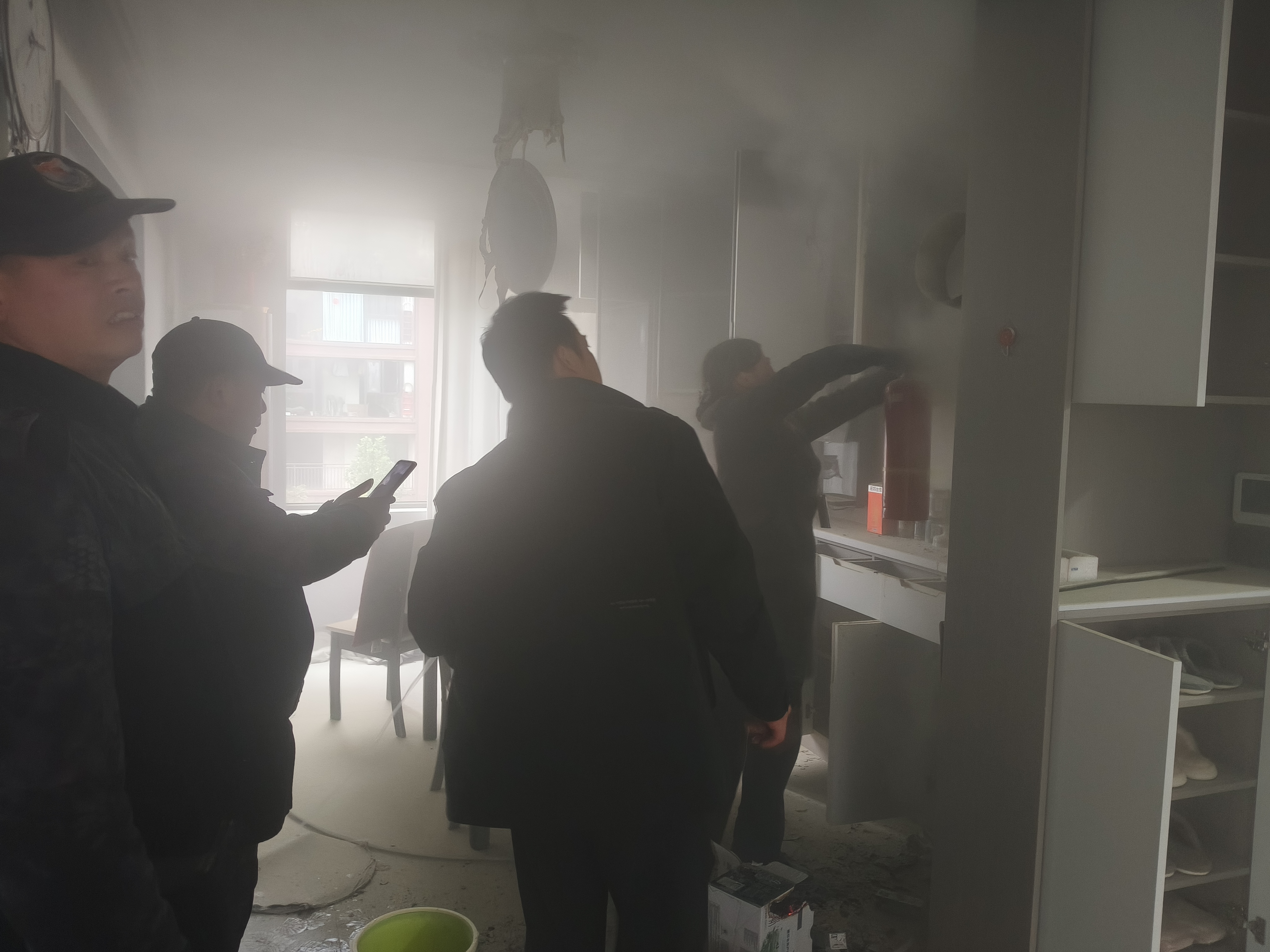 当日,该居民在家中休息时,突然发现大量烟雾从窗户滚滚冒出,意识到火情隐患后,该居民第一时间拨通了物业客服电话,客服负责人刘金红火速赶到现场。在初步判断火情系业主家中强电箱线路短路引发,客服负责人第一时间切断该区域公区电源,从源头遏制火势蔓延,随后手持灭火器,在业主的协同配合下,迅速开展初期灭火作业。与此同时,相关工作人员也赶赴现场,快速搭建应急处置临时指挥部,有序统筹处置、现场秩序维护等各项工作,整个处置过程紧张有序、衔接顺畅。