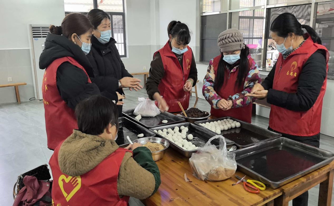 活动现场气氛热烈、暖意融融。志愿者们早早来到福利院,与院民们围坐在一起,分工协作、一起动手包汤圆。大家一边揉面团、放馅料,一边亲切交谈、闲话家常,欢声笑语此起彼伏,整个活动现场处处洋溢着温馨、祥和、喜庆的节日气息,香甜的汤圆承载着浓浓的关爱,让院民们提前感受到了节日的温暖。