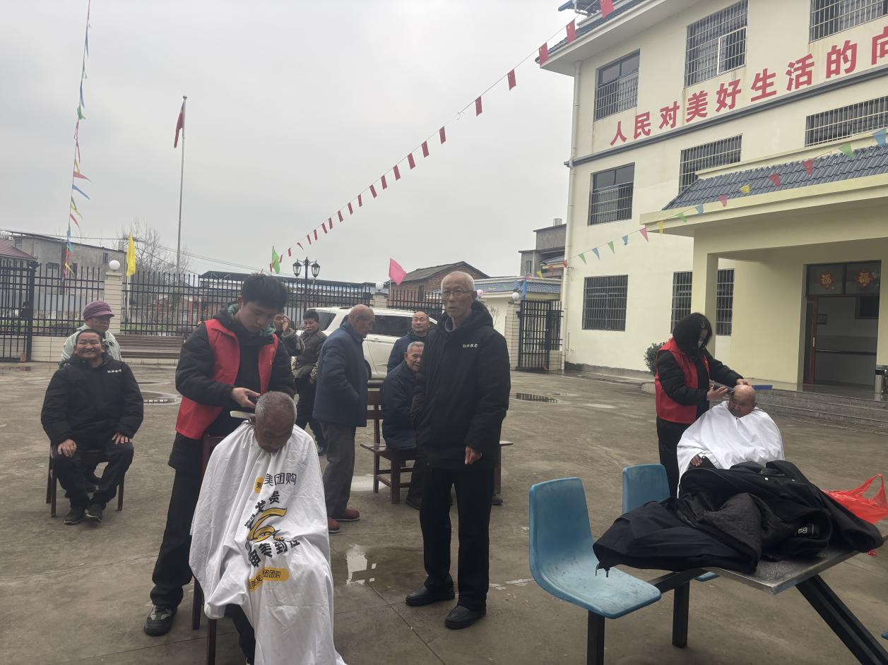 与此同时,另一边的志愿服务也在有序开展。志愿者们耐心细致地为院民提供免费理发服务,根据每位院民的需求精心修剪发型,动作轻柔、服务周到。经过打理,院民们面容清爽、精神焕发,脸上露出了满意的笑容。