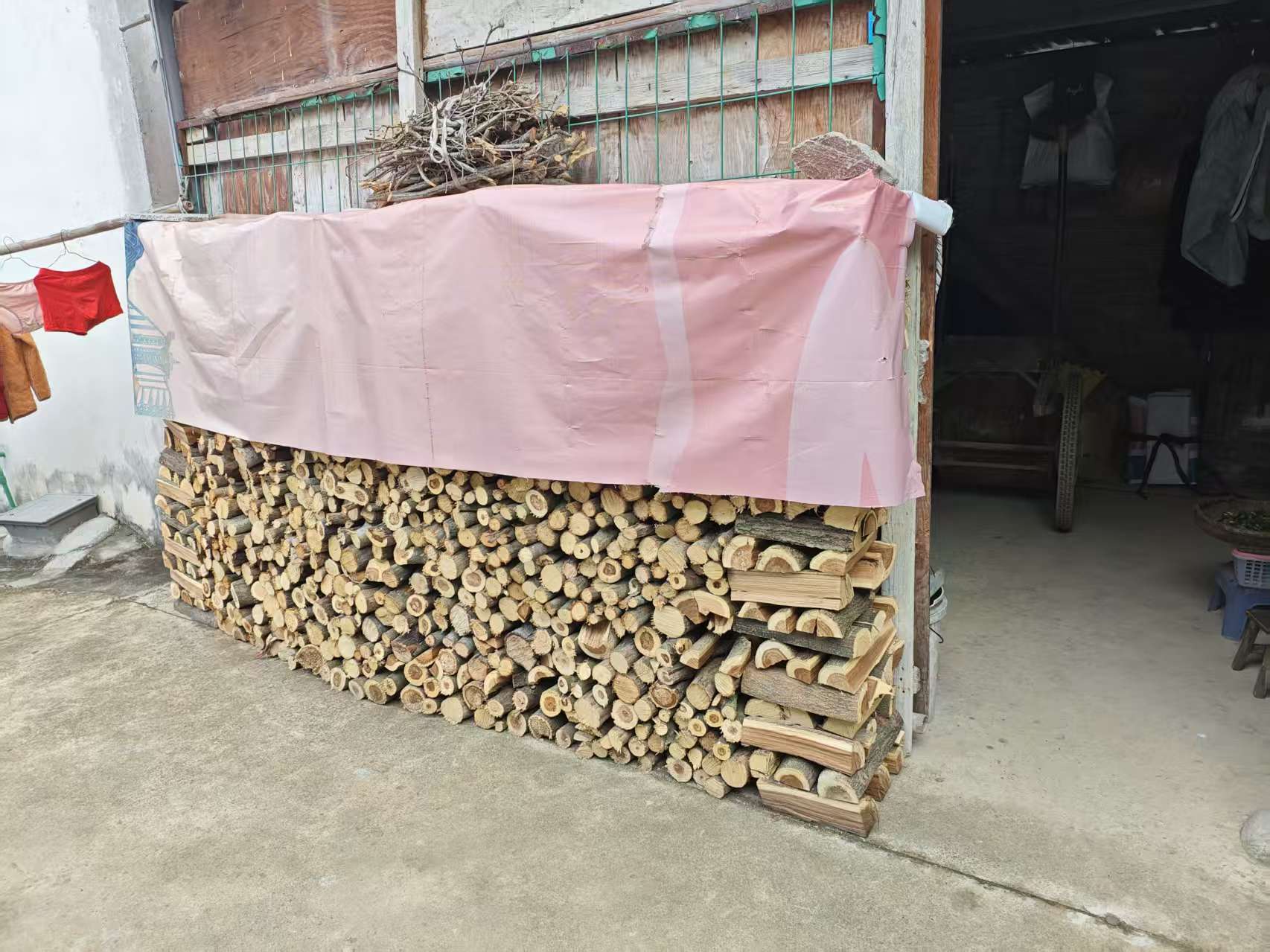 一个人情味浓的地方,老年人的各种状态就能被看见,各种细微的需求就能被满足。我们到隧洞村的刘冬梅家,她的孙子给她砍柴并整齐地堆在门口。她的邻居觉得她还缺引火的木棍茅草,就给她送来一大袋。这种细节只有在人与人长时间的互动过程中才能被察觉到,在一个熟悉的村里,有人聊天,有人顺手送菜吃,需要什么可以到小卖部挂账让儿子付钱,还有人来敲门看有没有什么意外。这些都是小事,但是对老人来说特别重要。