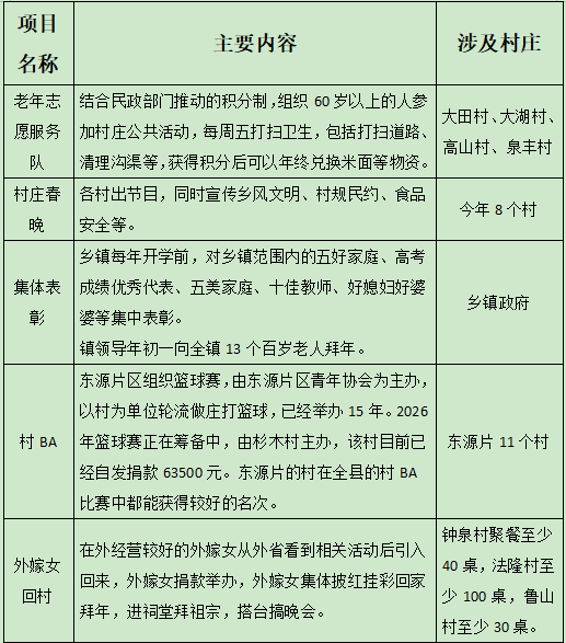除了敬老活动之外,王英镇的文化活动如下表所示: