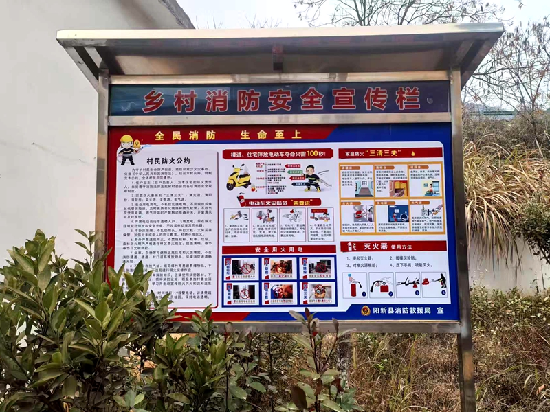 乡村地区房屋密集、耐火等级较低,柴草堆放、电线私拉乱接、电动车违规充电等火灾隐患较为突出,且村民消防安全意识相对薄弱,消防宣传栏作为乡村消防安全宣传的重要阵地,是传递防火知识、普及应急技能的关键窗口。此前,部分乡村消防宣传栏存在内容老旧、褪色模糊、针对性不强等问题,难以充分发挥宣传警示作用。此次更换工作,消防人员结合乡村火灾防控特点和村民生活实际,精心筹备了贴合农村场景的宣传内容,确保宣传接地气、有实效。重点涵盖农村家庭用火用电安全、柴草堆放规范、电动自行车安全充电须知、初期火灾扑救方法、火场逃生自救技巧等实用知识,还特别加入了乡村常见火灾案例警示、灭火器“提、拔、握、压”使用方法,以及“三清三关”(清厨房、清阳台、清楼道,关燃气、关电源、关火源)等易记易懂的防火口诀,同时明确了火灾报警流程,提醒村民发现火情及时拨打119,准确说明起火地址、火势大小等关键信息。
