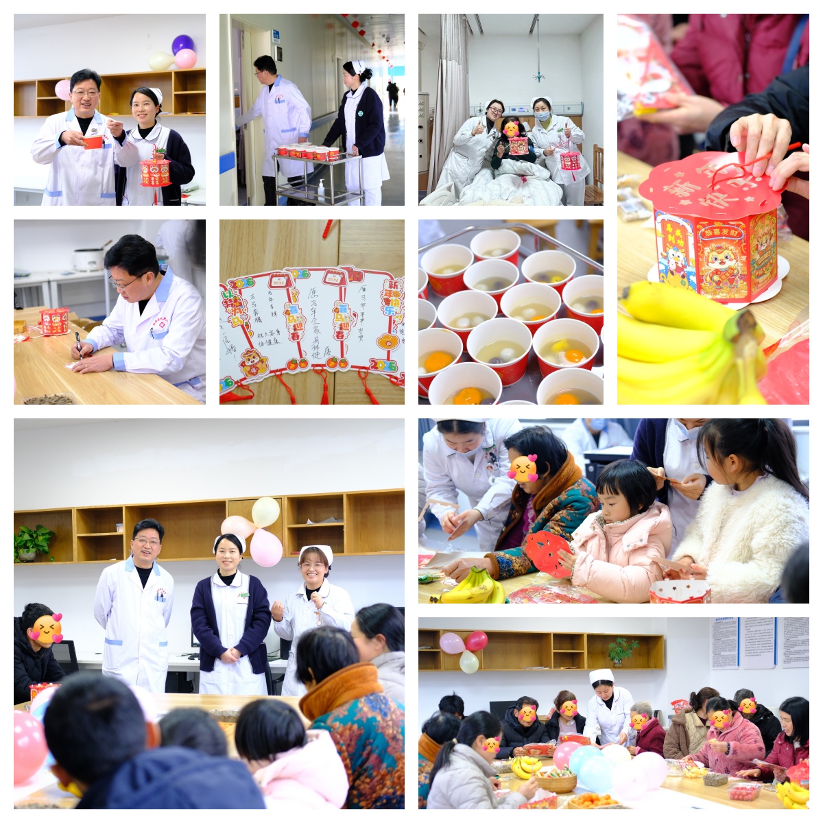 喜庆的标语、金红的气球,平日里忙碌的护士站,这一天成了最暖的“元宵驿站”。护士们端着汤圆穿梭病房,为行动不便的老人细心喂食,为术后患者送上节日问候。一位老患者紧握主任的手,声音哽咽:“住院这么久,以为这个节就这么过去了,没想到你们把团圆端到了我床前。”一碗汤圆,一次陪伴,让病房里的元宵节,也有了家的温度。