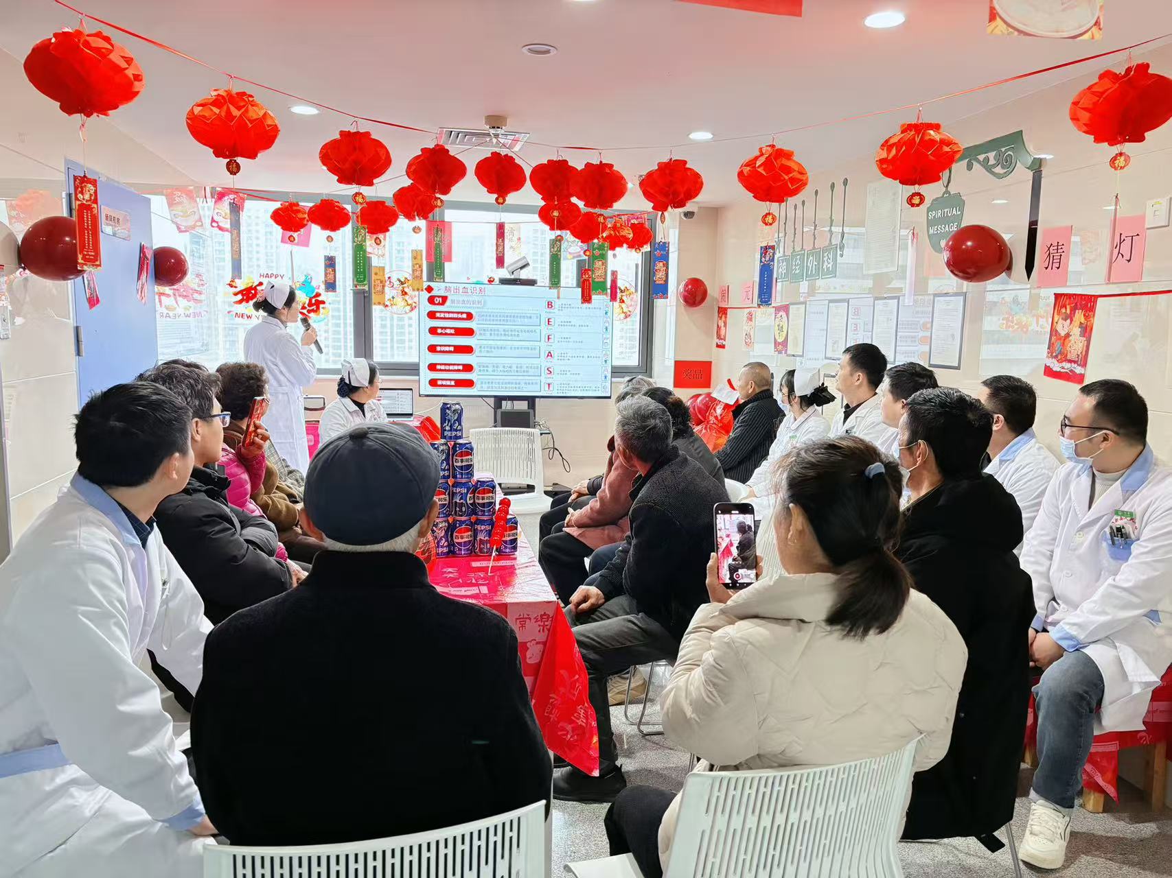 大家欢聚一堂,品元宵、学健康、玩游戏、做灯笼,在病区内共度一个欢乐、祥和、有温度的元宵佳节。