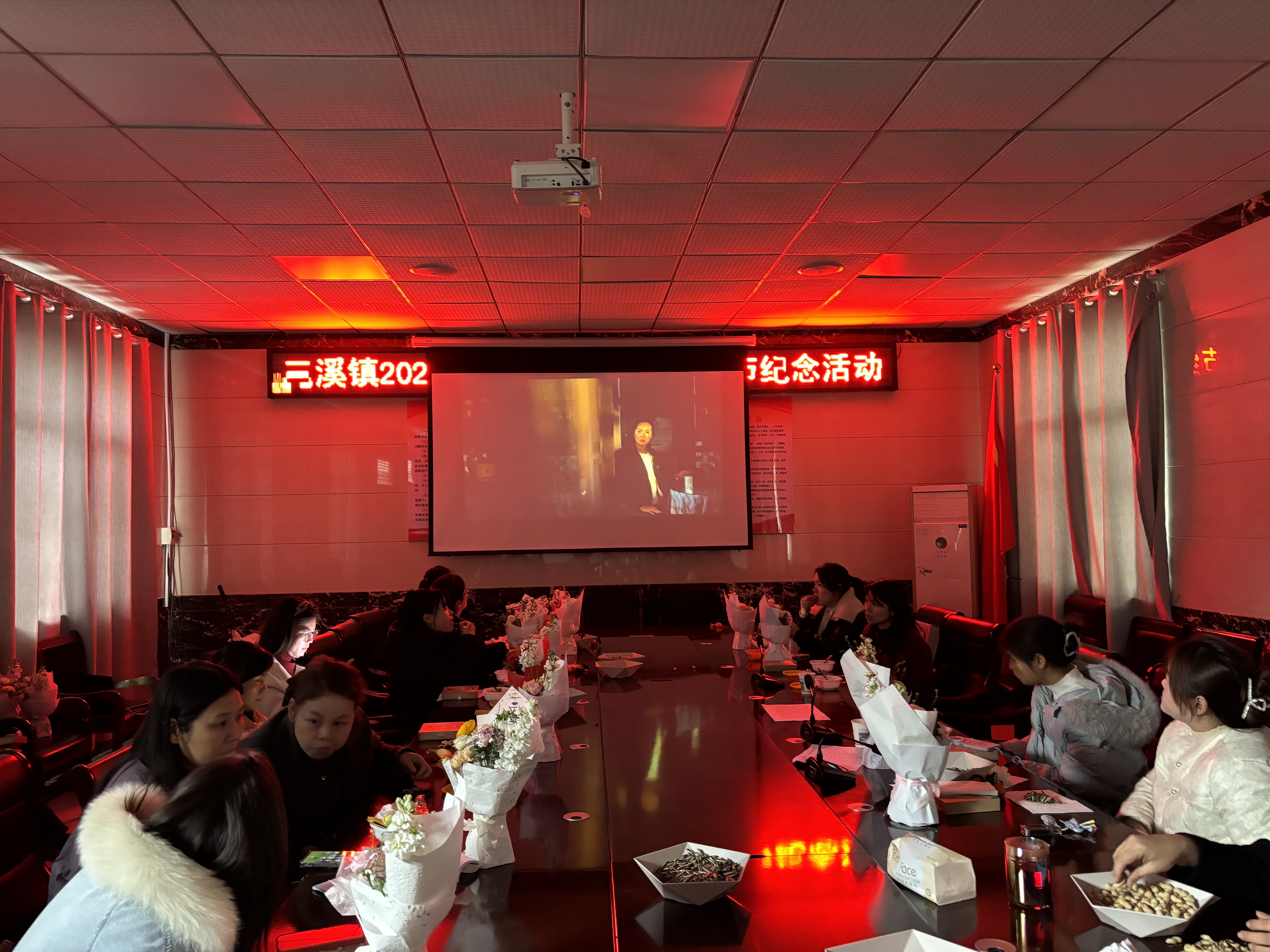 3月6日上午,三溪镇政府一楼会议室里花香阵阵、瓜果飘香,第116个“三八”国际妇女节纪念活动在此温馨举行。桌上摆放的鲜花、水果和瓜子,让这场活动少了几分严肃,多了几分如家般的暖意。