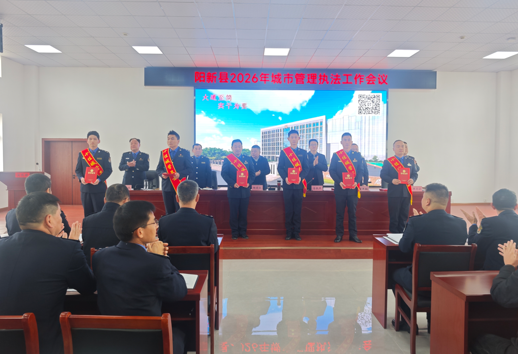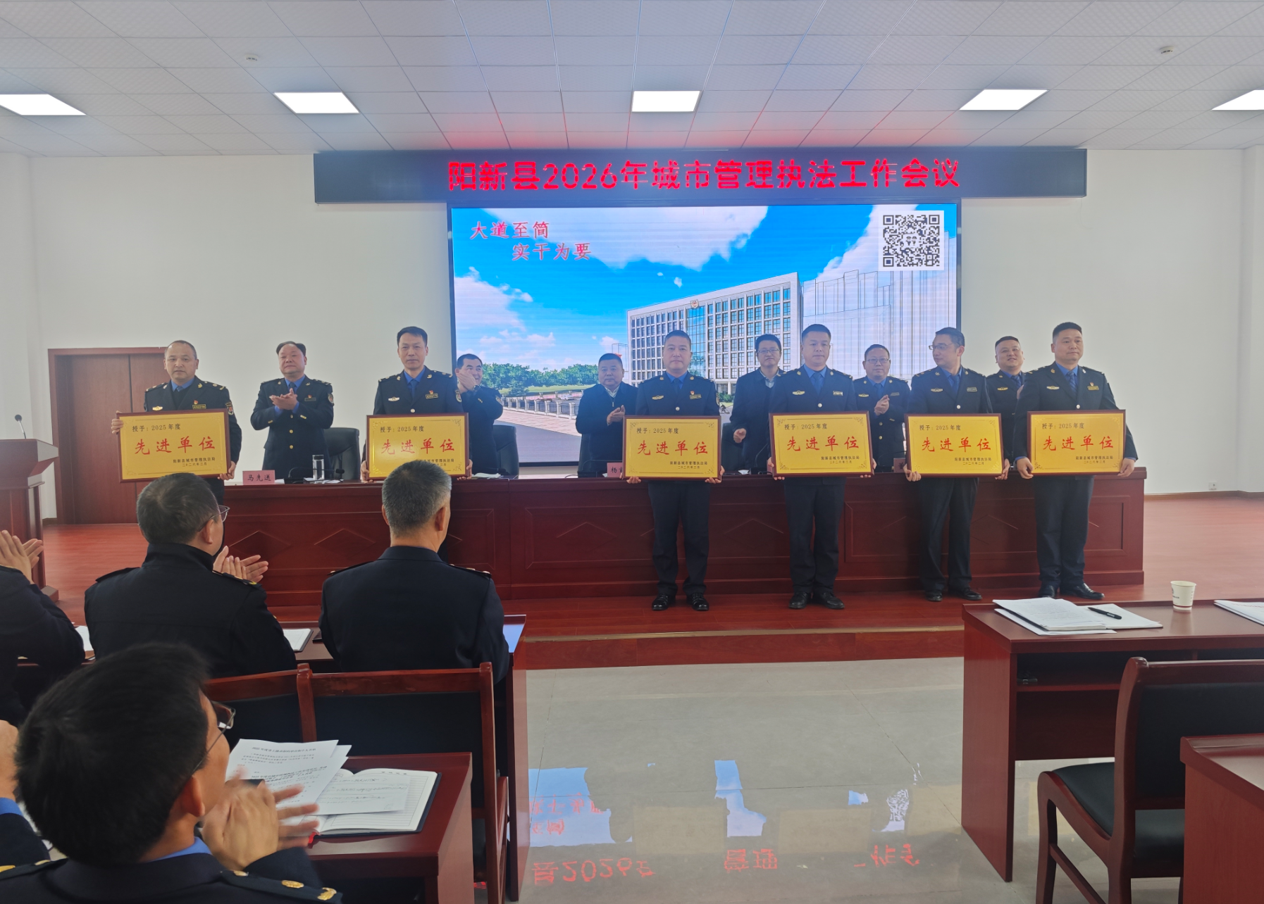 会议观看了《阳新城管2025年度工作掠影》专题视频,宣读了表彰决定,对城管工作先进集体和先进个人代表进行了颁奖,部分先进典型作了交流发言。