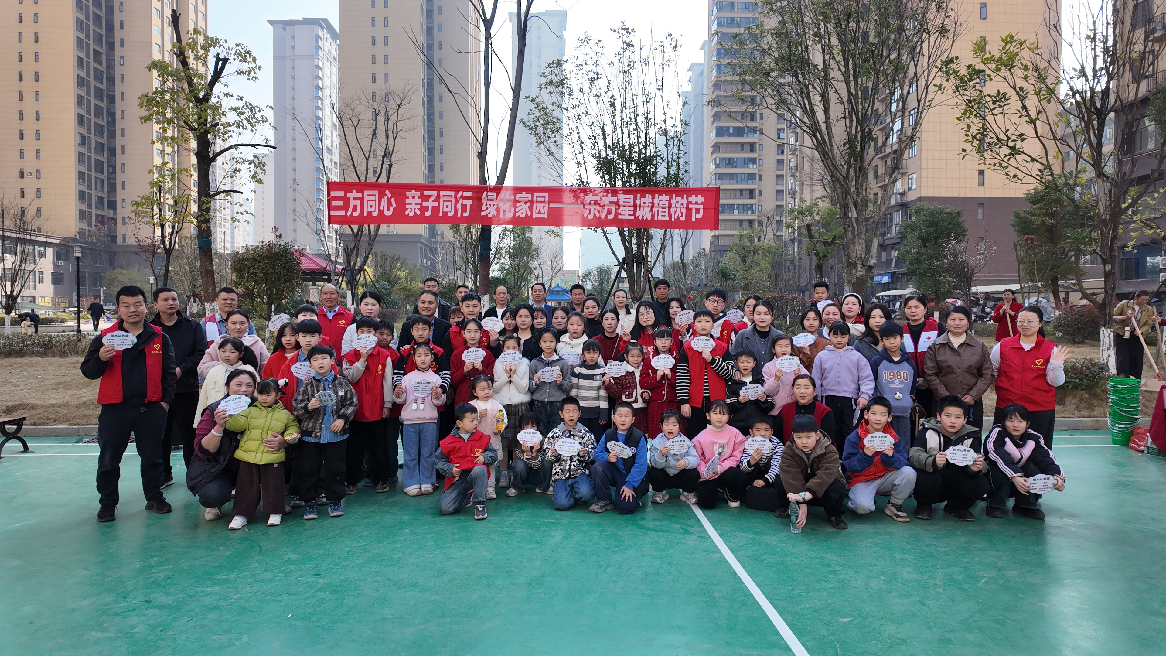 3月14日上午,东方星城小区业委会携手小区物业、城东管理区新湖社区开展“三方同心 亲子同行 绿色家园”主题植树活动,50余组亲子家庭参加活动。