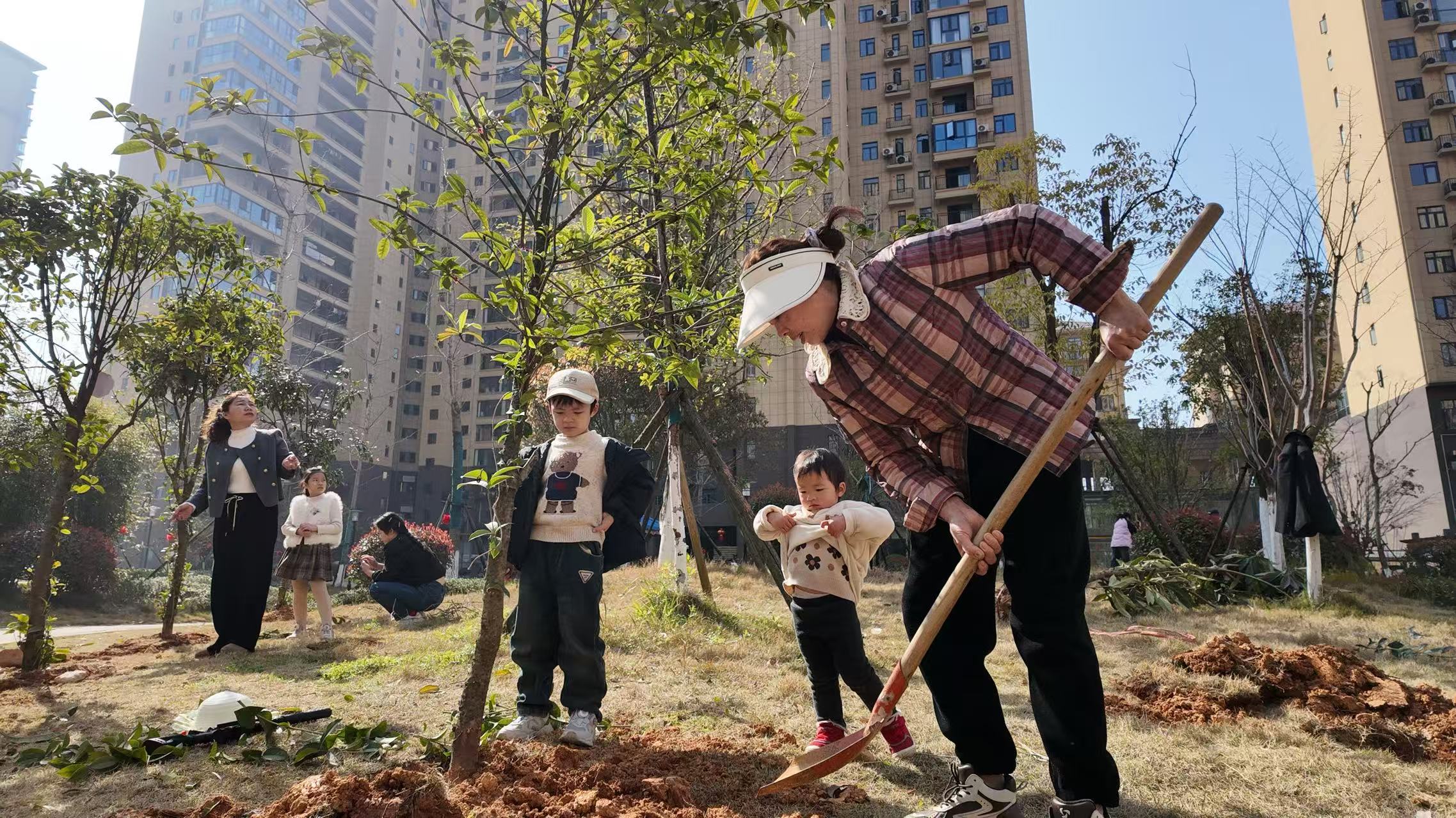 植树完成后,参与家庭为小树苗挂上专属认领牌,让绿色发展理念在心中扎根。50余株桂花、枇杷、红叶石楠等树苗,为小区增添了一抹清新亮丽的色彩。