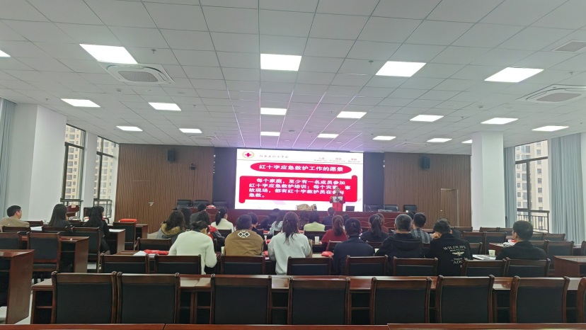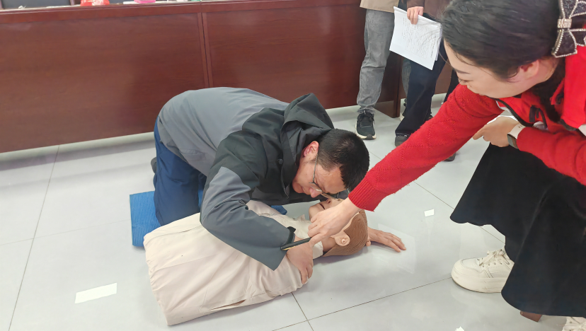 授旗仪式后,余桂兰等三位资深师资为学员们开启了干货满满的培训课。红十字运动、心肺复苏、气道异物梗阻急救、AED操作、创伤救护四项技术……理论讲解+实操演练,学员们学得认真,练得起劲。