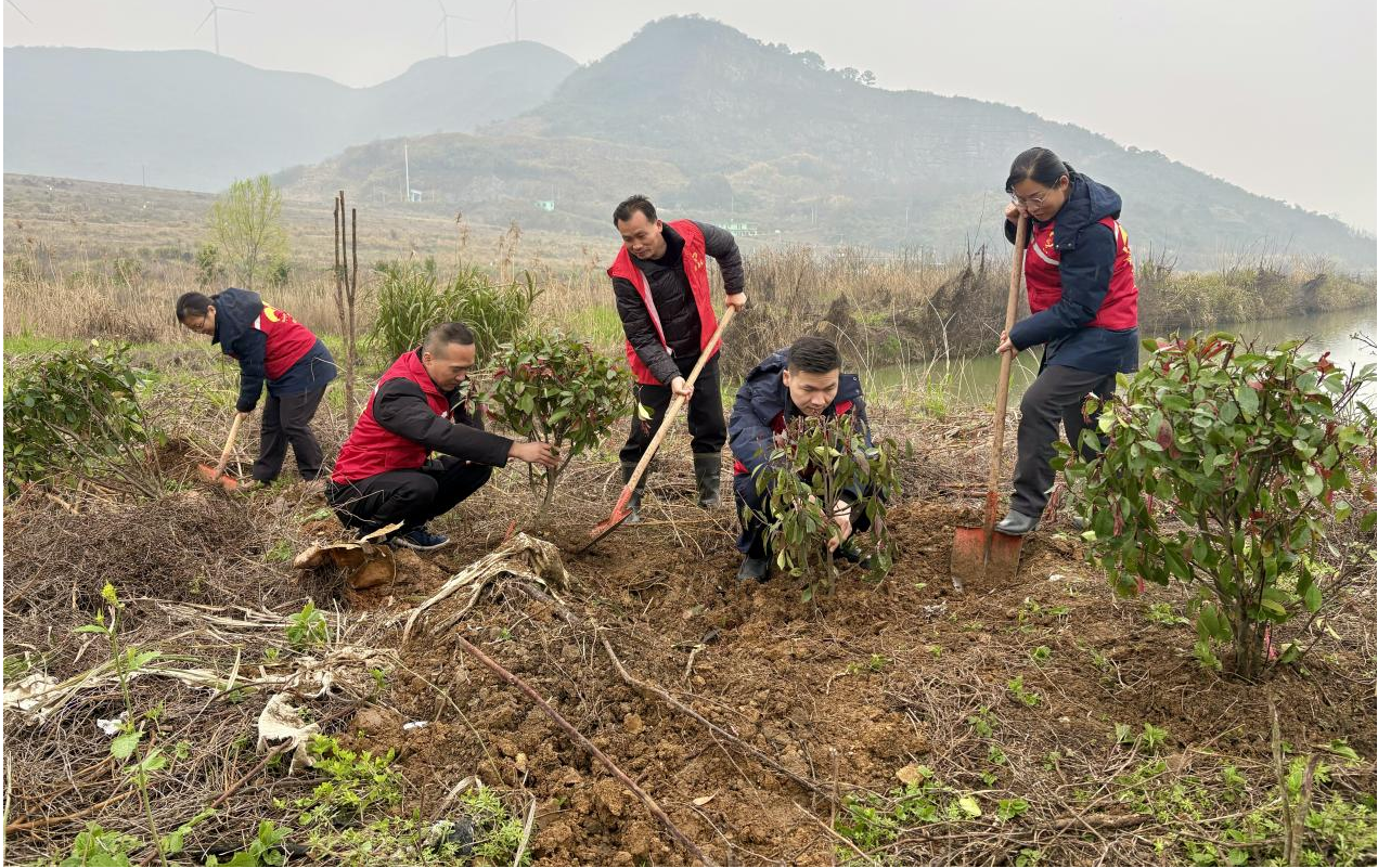 活动现场,志愿者们身着红色志愿马甲,分工协作、干劲十足,认真细致地挖坑、扶苗、填土、踩实、浇水,确保每棵树苗扎根沃土。大家发扬不怕苦累的志愿精神,忙碌的身影与春日绿意交相辉映,成为乡村里一道亮丽风景线。