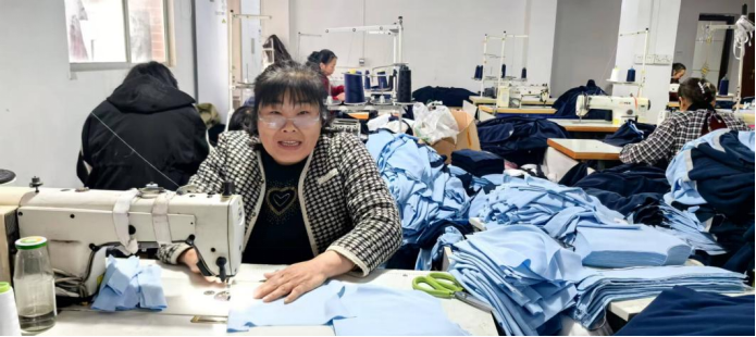 聋哑女王玉娟因听力言语障碍,长期待业在家,自卑又无助。李红花得知后,主动将她招进工厂,手把手教熨烫、教工序,工友们也用写字、手语耐心与她交流。如今,王玉娟不仅熟练掌握技能,每月能稳定拿到3000多元工资,脸上的笑容也多了,人也自信开朗起来。在车间里,像王玉娟这样的特殊员工还有10多人,他们在家门口实现了稳就业、能增收、有尊严。