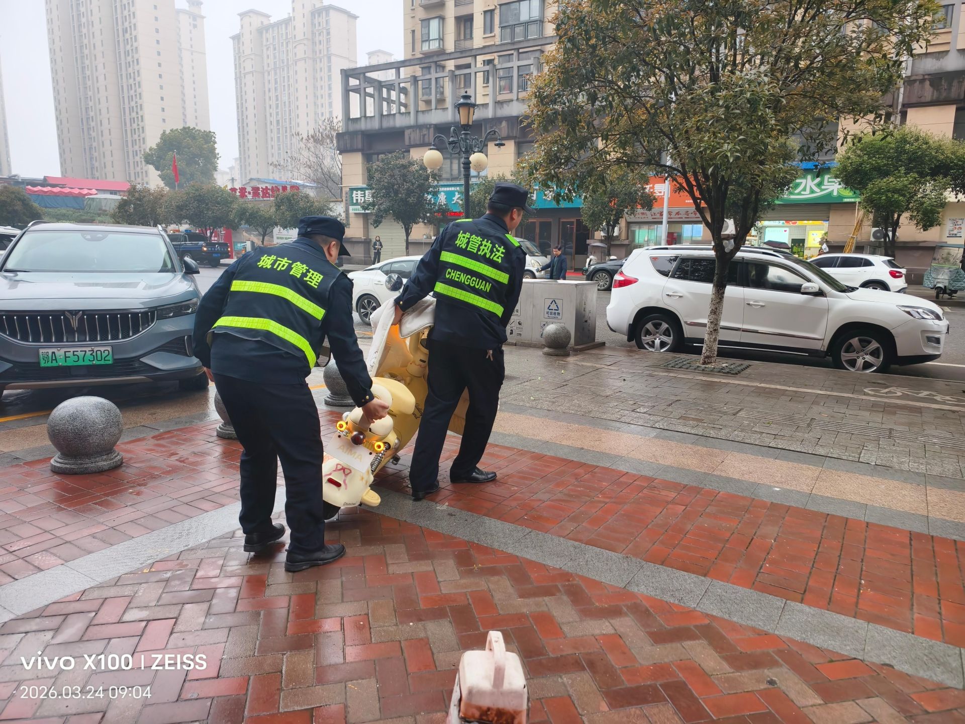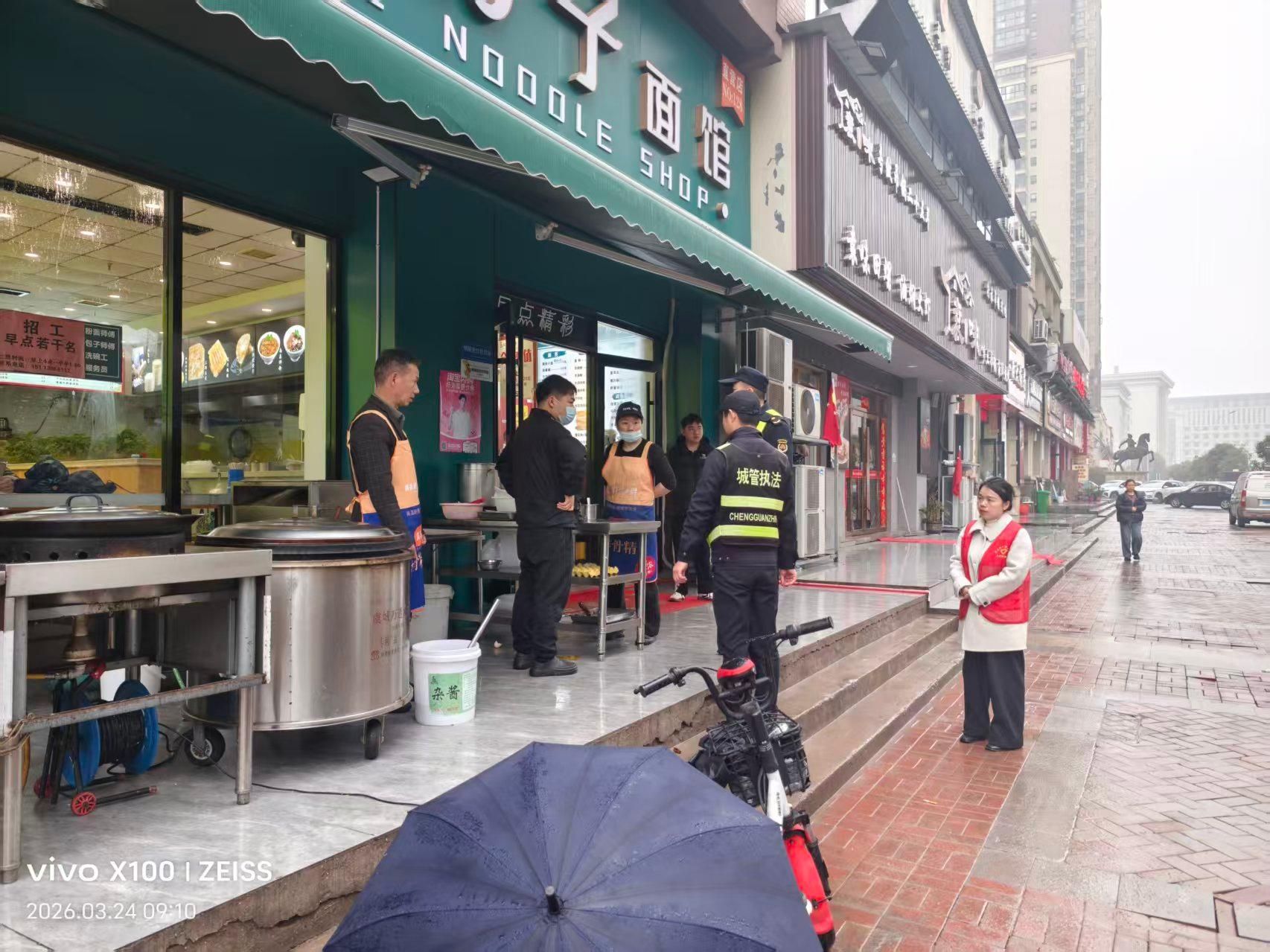 整治过程中,社区工作人员与城管执法人员协同发力、分工配合。针对部分商铺出店经营、占道堆物等行为,联合工作组逐户上门宣传城市管理规定,劝导商户履行 “门前三包” 责任,清理店外杂物,做到入室规范经营。