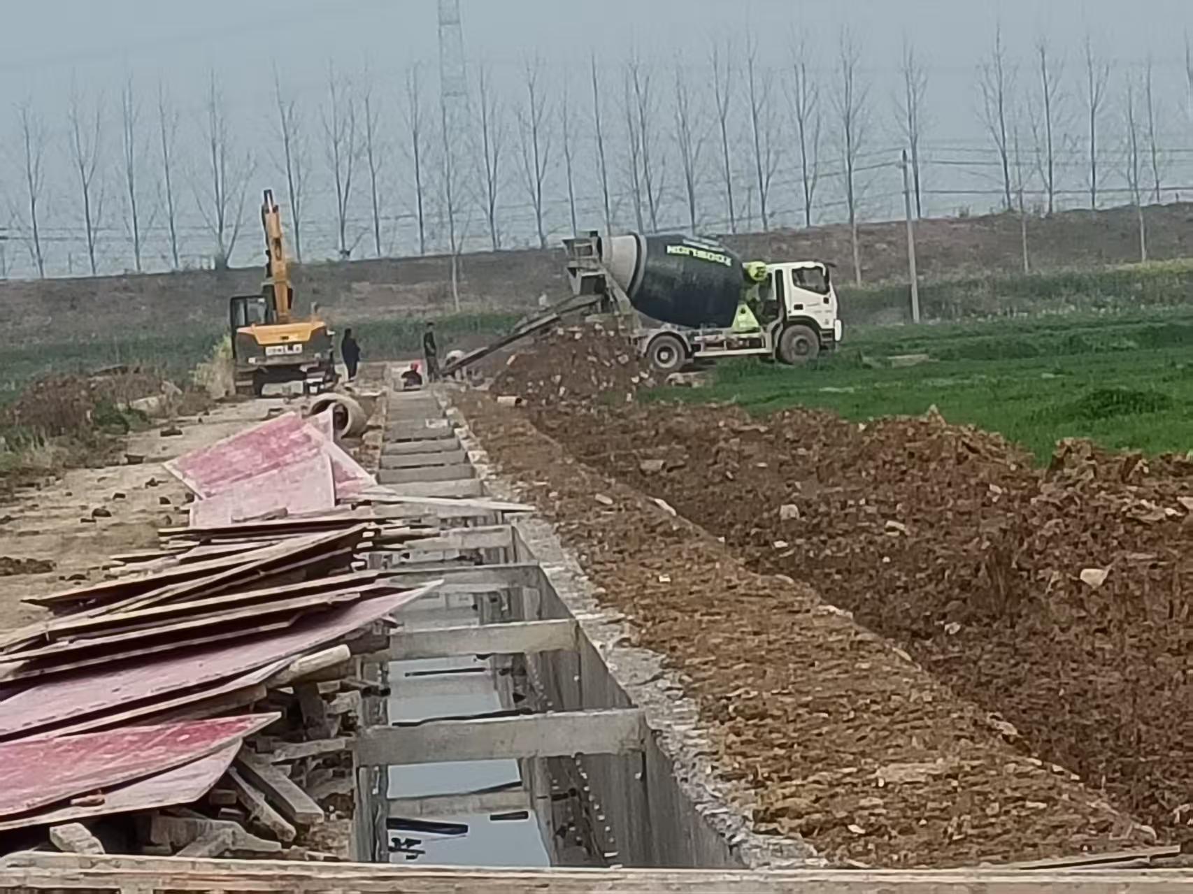 3月25日,在阳新县荆头山农场的一处处农田旁,商砼车正不断向沟渠内扎好的钢筋架输送混凝土,这是该农场抢抓水稻种植前的有利时机,如火如荼推进水利建设的场景。