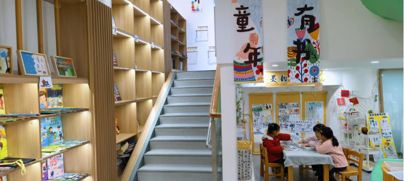绘本馆内,墨韵悠长,构建起一方多维立体的精神家园;视听区内,皮影小剧场光影交错,孩子们在光影变幻中领略传统艺术的韵味;表演区里,孩子们化身故事主角,将蔬菜、萝卜、辣椒、桃子的故事演绎得童趣盎然,在角色扮演中感悟生活真谛;静读区中,“墨韵书香坊”幽雅静谧,孩子们捧书静读,在字里行间汲取成长的养分。
