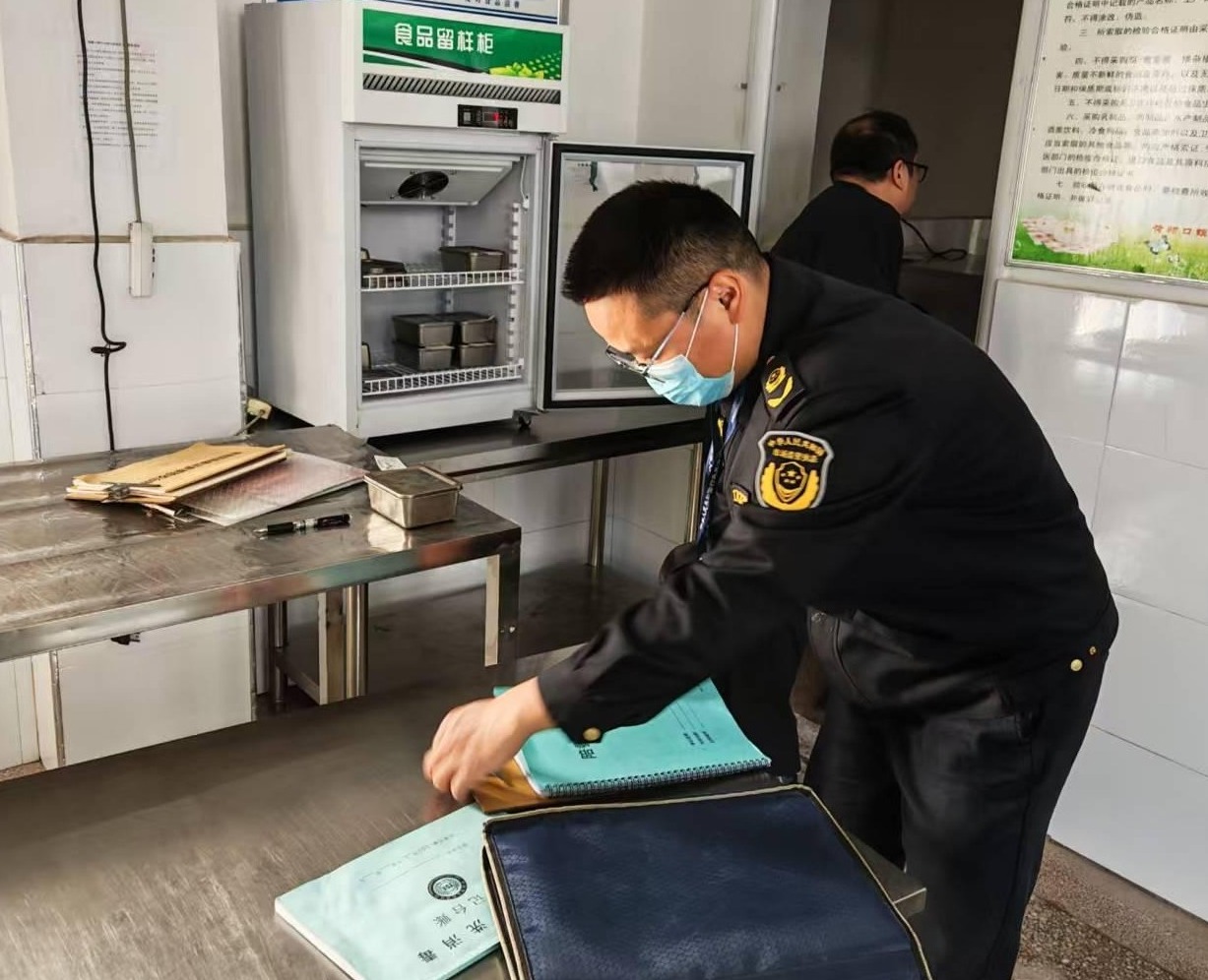 同时,执法人员深入食堂操作间,重点规范食品加工制作流程,督促工作人员严格落实生熟分开、烧熟煮透要求,严防食品交叉污染;仔细检查餐饮具清洗消毒流程是否规范、消毒设施是否正常运行,逐项核对食品留样是否做到足量留存、记录完整、按时封存,确保留样环节符合食品安全标准。此外,对食堂环境卫生、功能分区划分、设施设备运行维护等情况进行全面排查,现场梳理安全隐患,做到不留盲区、不漏一处。