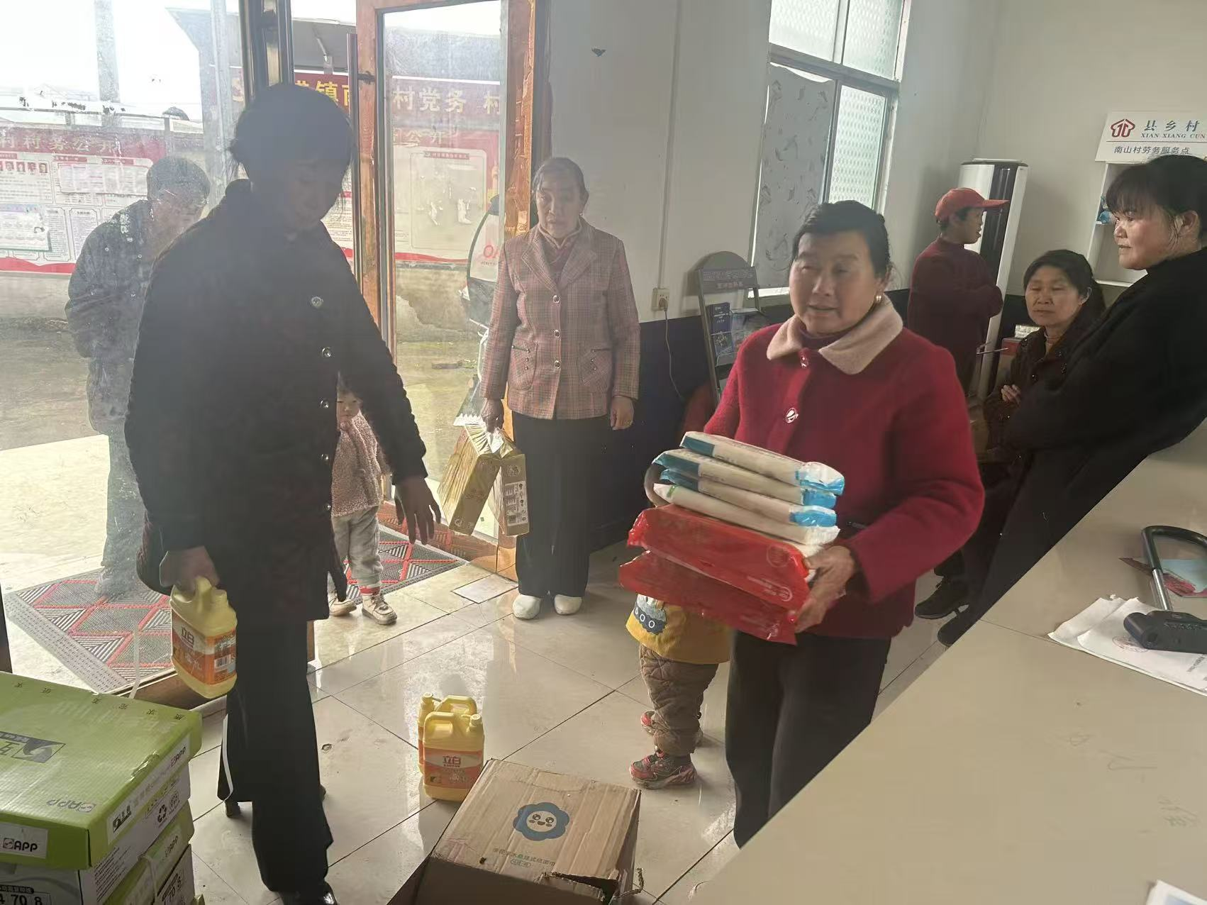 兑换现场,村民们依次排队查询积分,村委会工作人员与巾帼志愿者们相互配合,仔细核对每一份积分记录,将洗衣液、食用油、牙膏、洗发水等实用的生活物资一一递到村民手中。拿到兑换物资的村民纷纷表示,积分兑换让志愿服务有了实实在在的回报,既体会到了劳动的价值,也真切感受到了村委会的贴心关怀。
