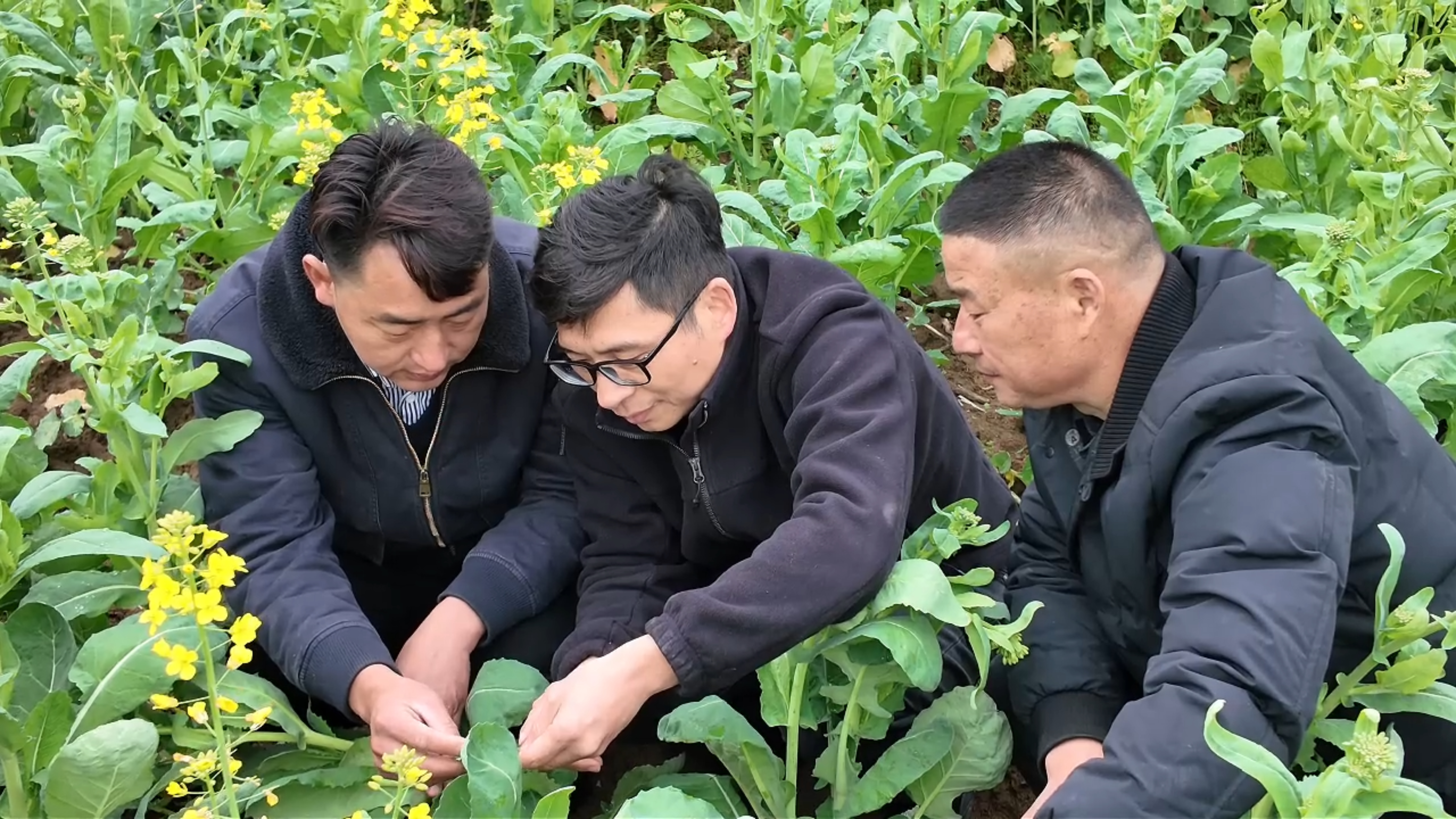 刘合福说道:“现在油菜底部的叶片发黄,有很多病害的斑点。不采取措施的话,植株会慢慢变黑,然后枯死。”