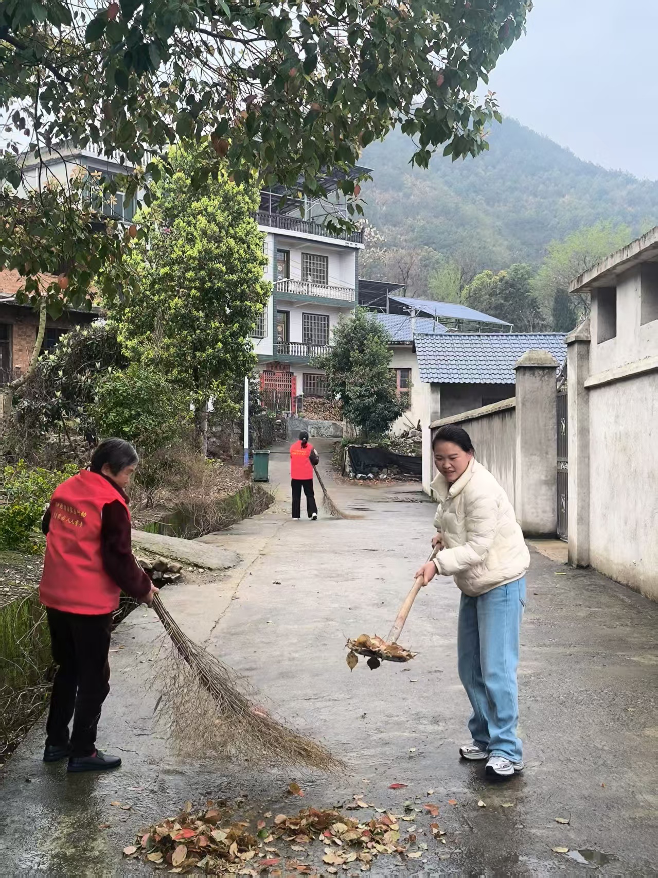 在村“两委”的组织和村妇联带动下,身着鲜艳“红马甲”的巾帼志愿者们迅速集结。大家手持扫帚、铁锹、垃圾袋等清洁工具,重点对村内主干道路、公共区域、房前屋后、沟渠河道以及各类卫生死角进行拉网式清理。无论是散落的生活垃圾、随意丢弃的杂物,还是堆积的枯枝落叶,都被细致地清扫、归集、转运。党员与群众同心,巾帼与志愿同行,形成了人居环境整治的强大合力。