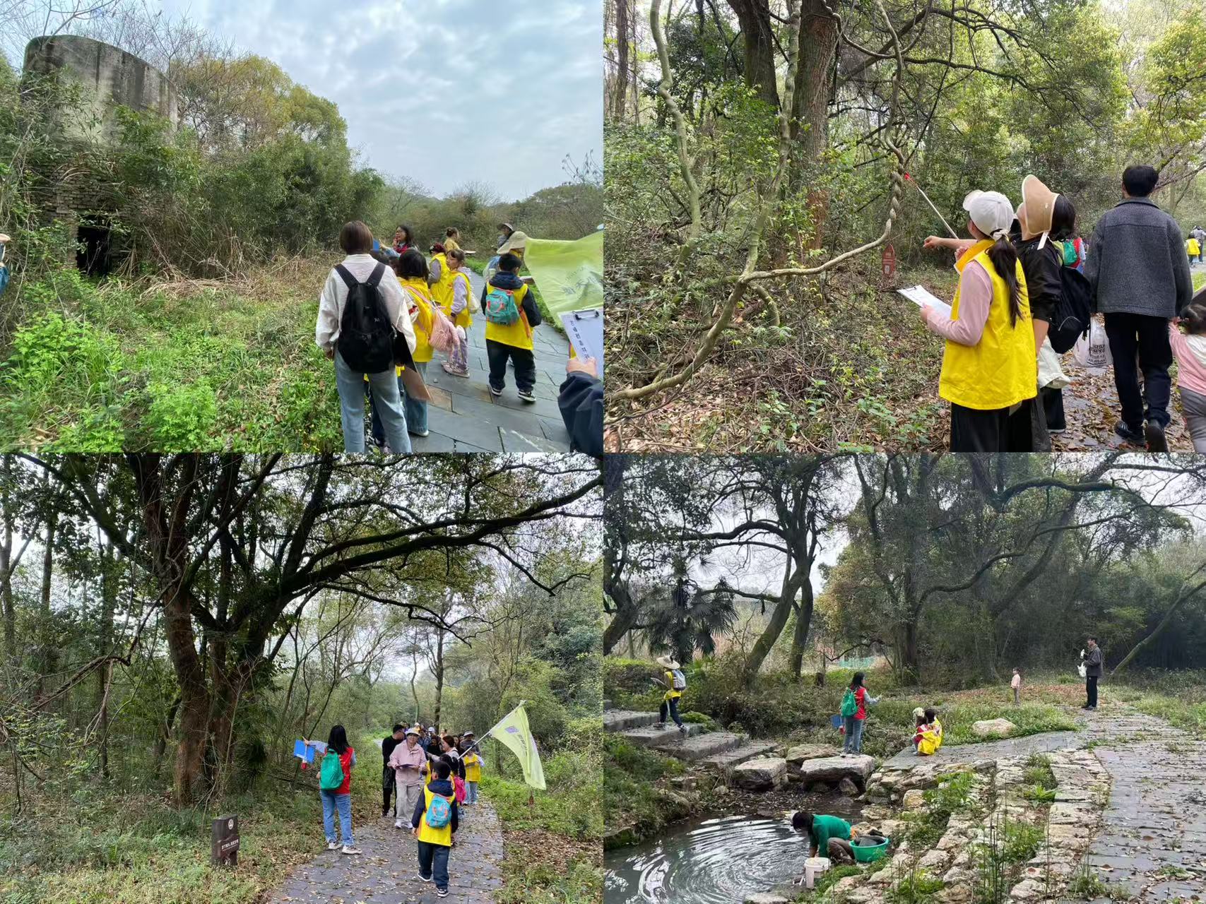 热身运动结束后,在志愿者老师的带领下,亲子家庭沿着预设科普路线徒步探秘,走进郁郁葱葱的古樟森林。志愿者老师一路悉心讲解,为孩子们介绍古樟树群的生长历史、生态特征与深厚文化底蕴,科普湿地生态系统的功能、湿地植物的种类及作用,细心指导家庭开展自然观察。孩子们带着好奇与探索欲,认真聆听、细心观察,时不时向老师提问,在沉浸式的自然体验中,近距离感受湿地与古樟森林的生态魅力,收获了丰富的生态科普知识。