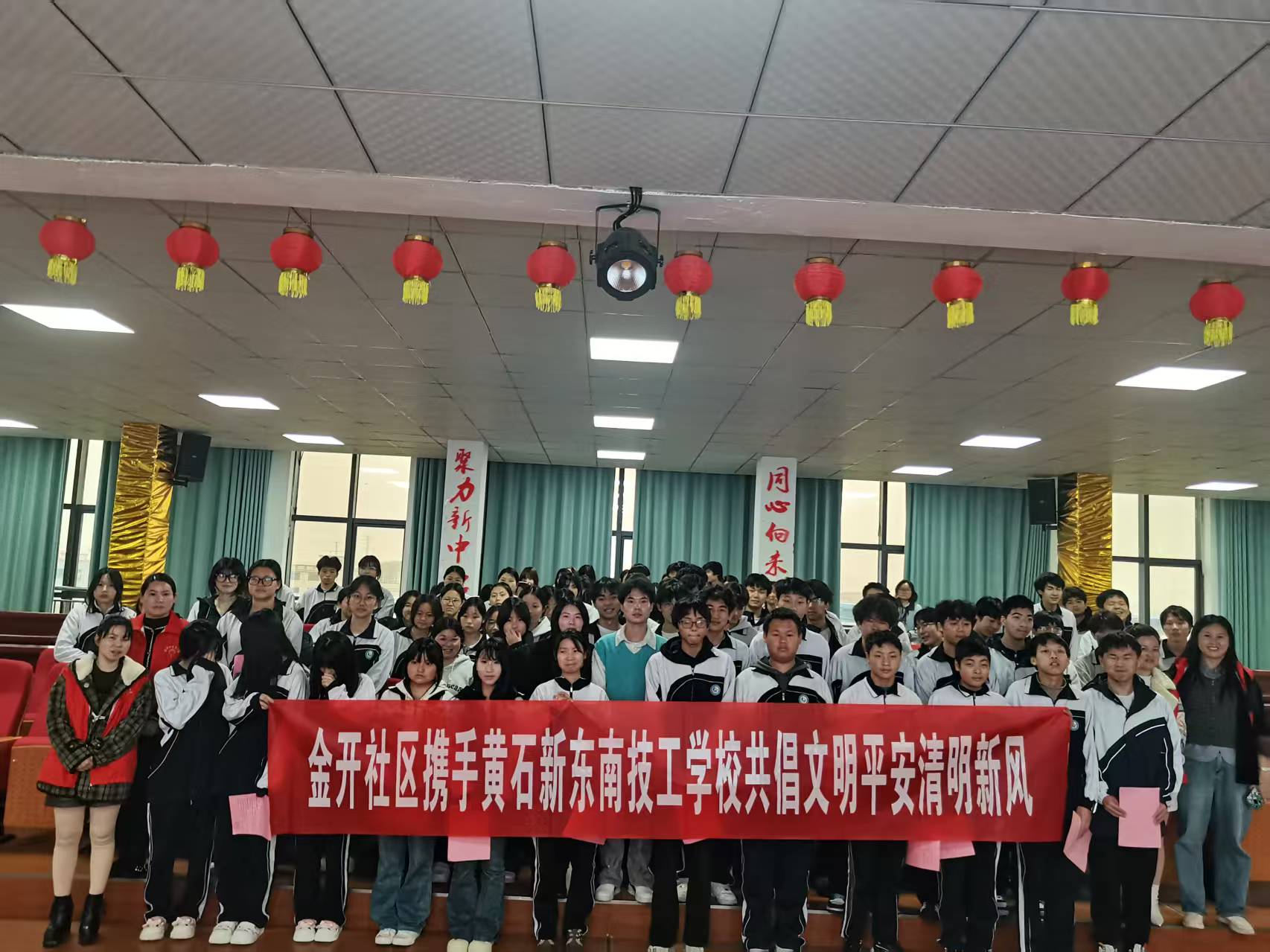 3月31日上午,阳新经济开发区金开社区联合黄石新东南技工学校开展“清明节进校园”主题活动。活动以“传承文化、缅怀先烈”为主题,通过知识讲座、互动问答、观看红色教育短片、文明祭扫宣誓等多种形式,为师生们带来了一场富有教育意义的文化体验。