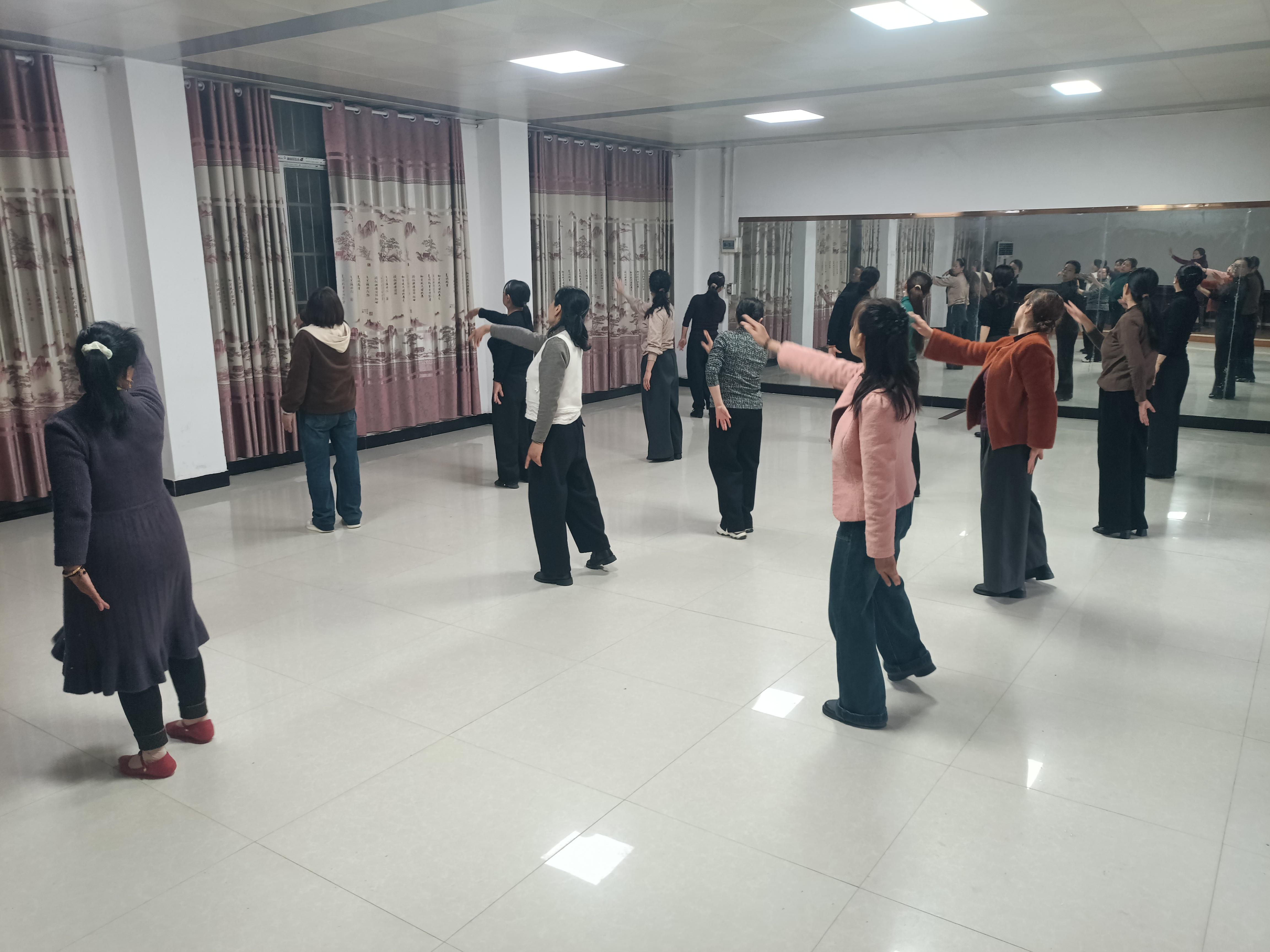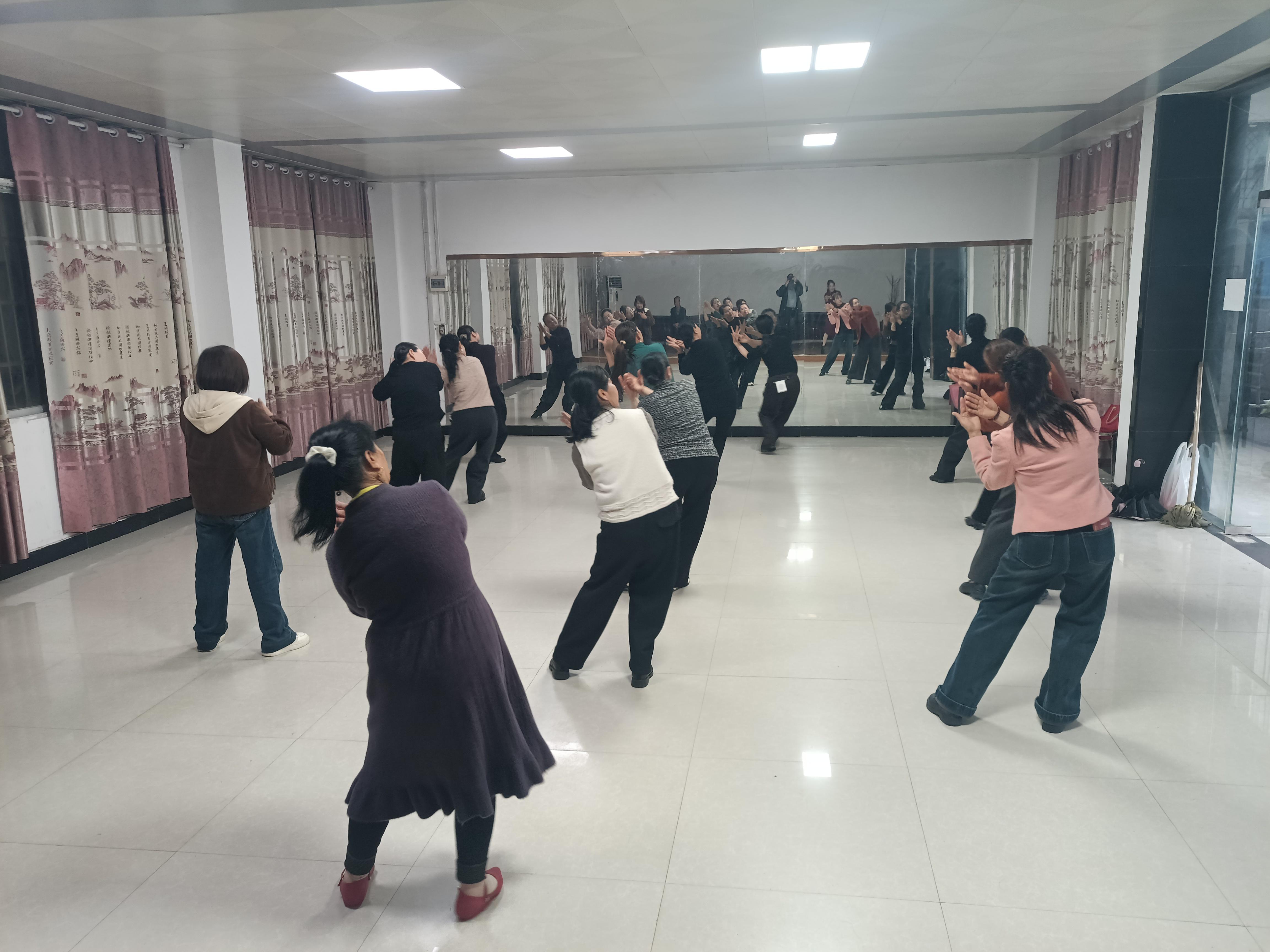 当天,老师教的秧歌舞在歌曲《又见那孤雁飞》的伴奏下,学员们整齐地摆好队形,跟着老师的示范动作,挥挥手,扭扭腰,用优美轻盈的舞步,在欢快的音乐声中释放活力,收获快乐。