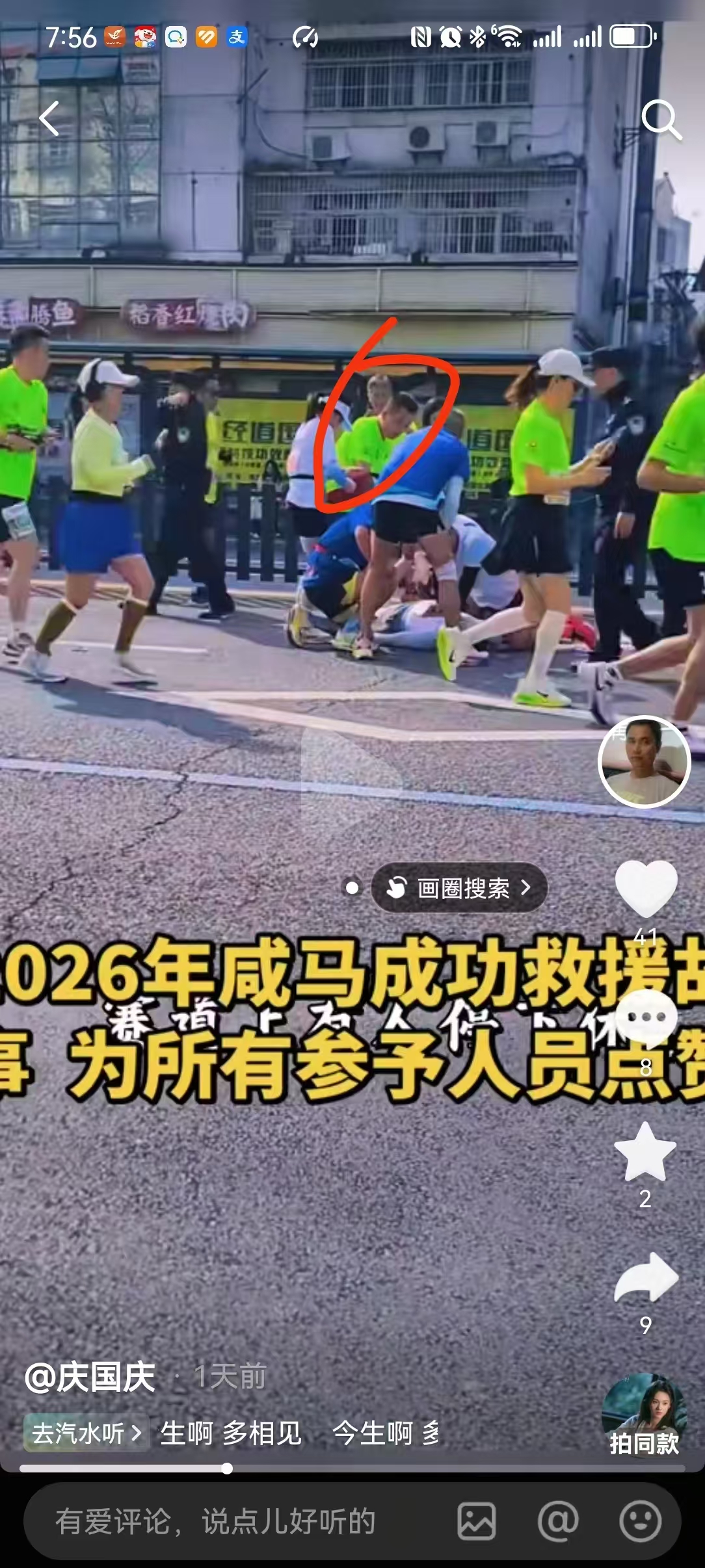 3月29日,在咸宁马拉松赛道上,选手们挥洒汗水,挑战极限。然而,一场突如其来的生死营救,在赛道边悄然上演。