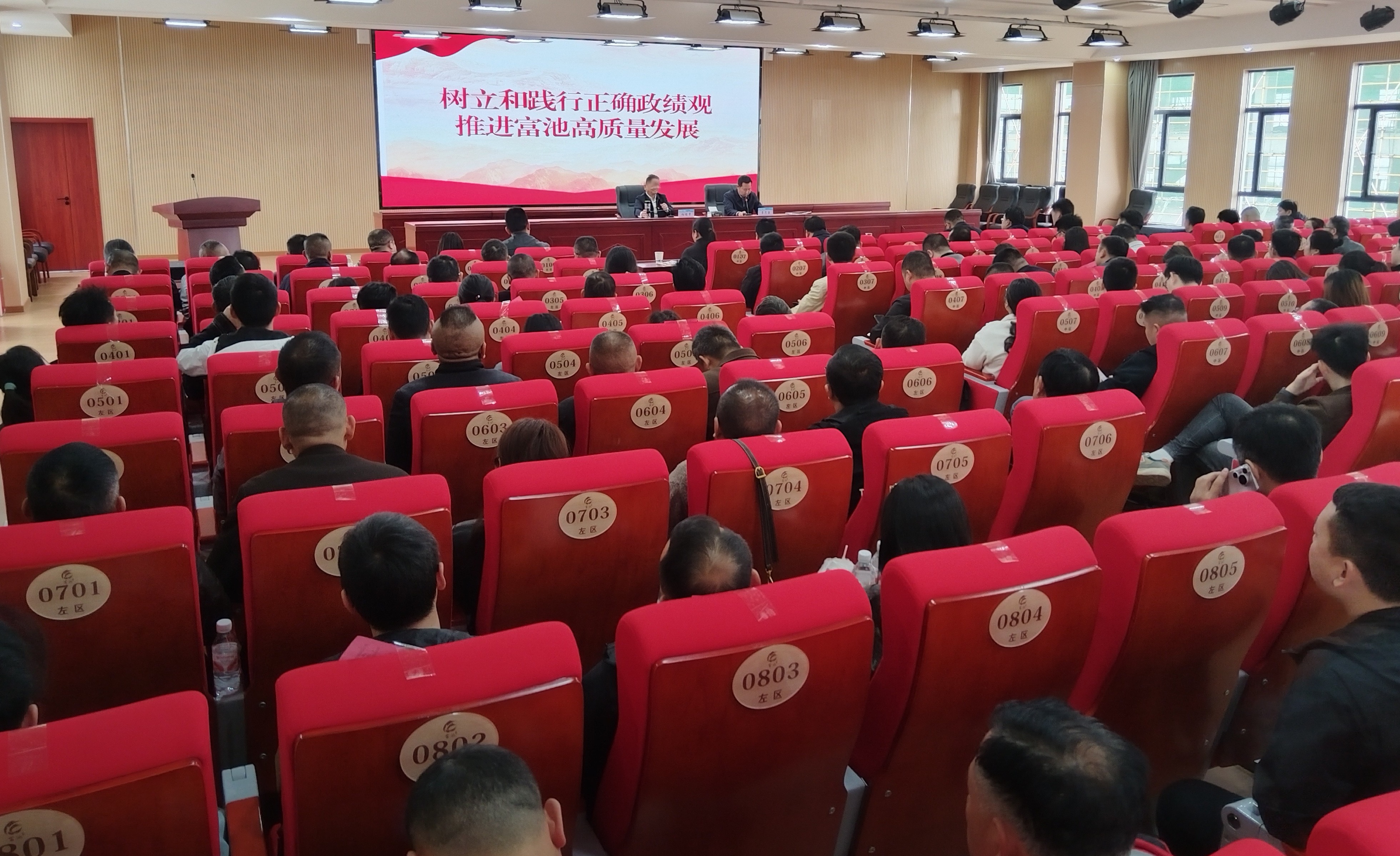 4月2日上午,富池镇2026年党校党员教育培训会议在镇企业服务中心举行。会议以“树立和践行正确政绩观”为主题,为全镇256名党员干部开展专题辅导。
