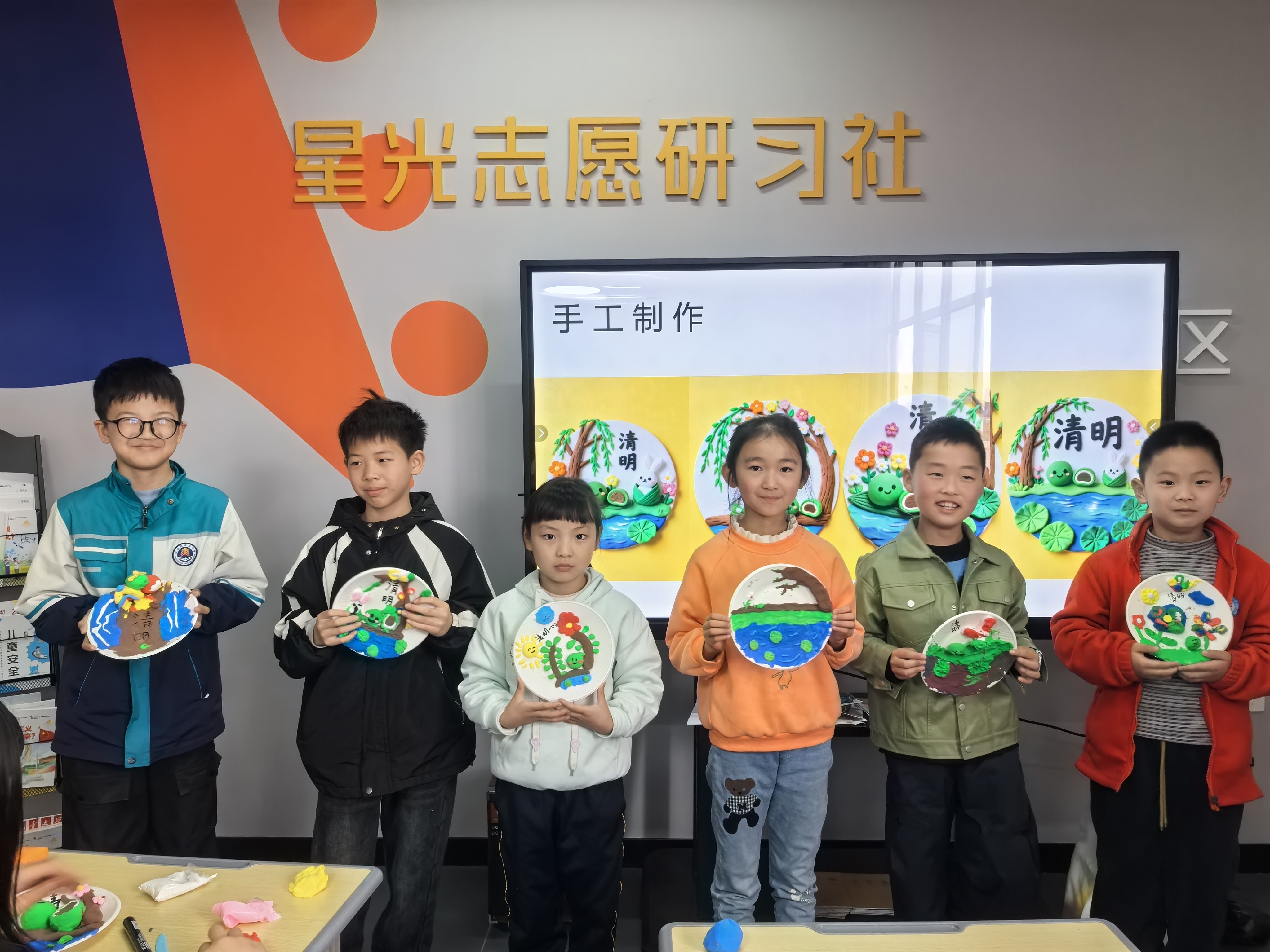 手工创作环节,孩子们化身“小小创作者”,将对英烈的缅怀、对传统文化的理解,融入手工黏土创作中。志愿者在旁悉心指导,孩子们或凝神构思、或细心雕琢,用彩笔书写清明寄语,用巧手塑造童趣图案。“我要把这幅黏土画送到烈士陵园,告慰英烈们的付出,谢谢他们守护我们!”创作间隙,孩子们相互交流灵感,现场氛围庄重而温馨。一幅幅色彩鲜明的黏土画,既是对英烈的深切缅怀,更是新时代少年爱国情怀的生动写照。