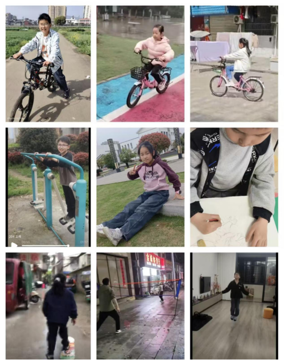 亲子相伴,乐享运动时光。家长们化身专属教练,耐心陪伴孩子学习新技能、巩固老本领:手把手教孩子骑自行车,陪着孩子练习跳绳、打羽毛球,一起玩转滑板车。闲暇之余,孩子们还拿起画笔,描绘春日美景、心中所想,用色彩勾勒童真,用创意表达对生活的热爱。