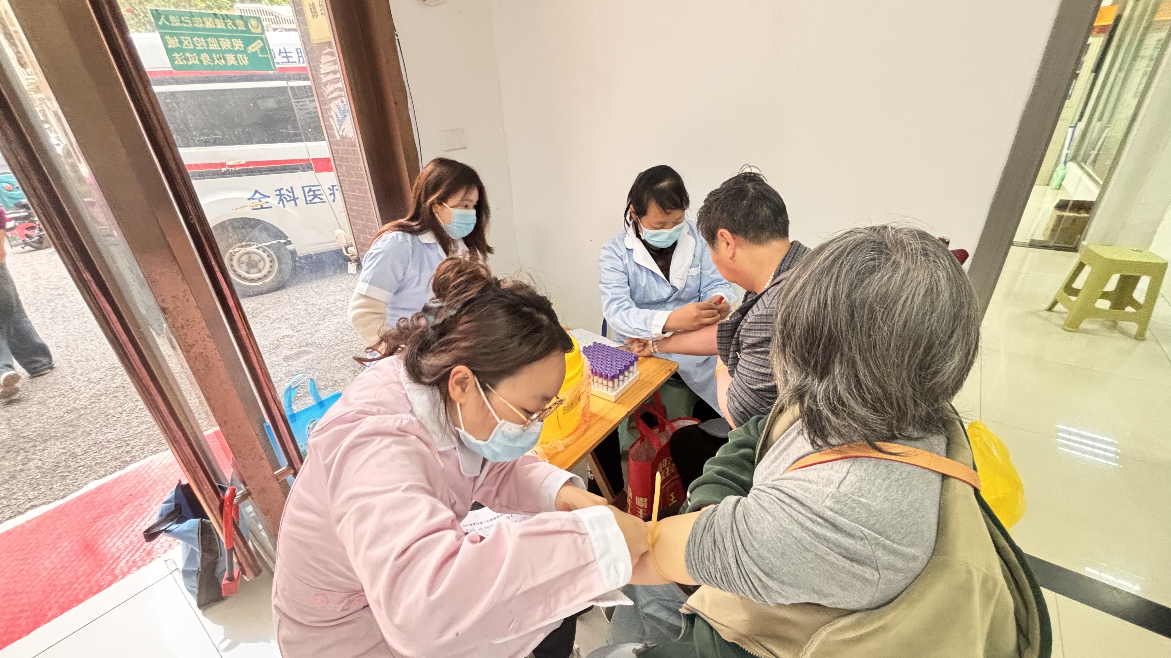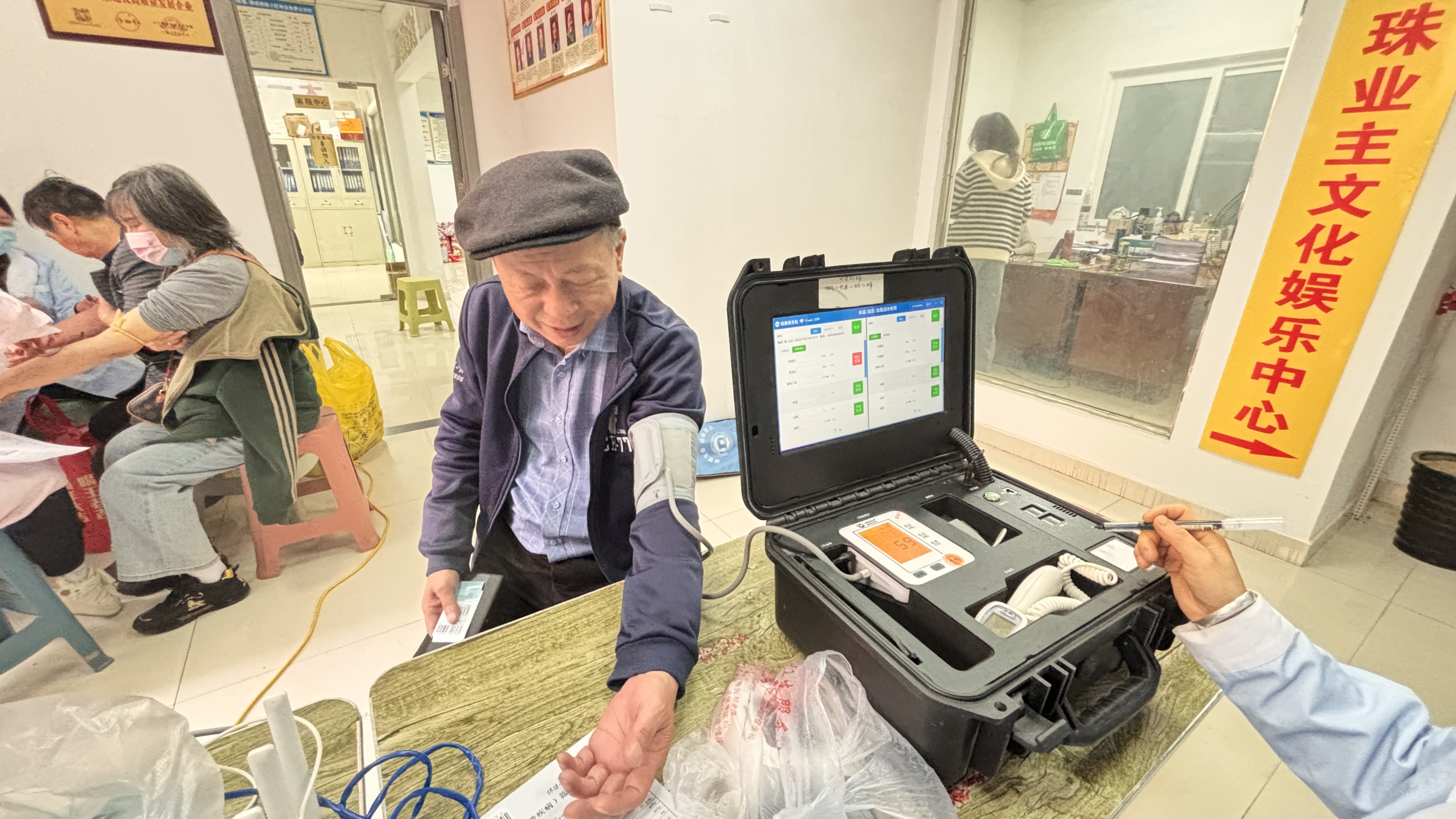 活动现场,医护人员分工明确、流程有序,为居民提供全方位、一站式的健康服务。采血区里,医护人员细致地为居民采集血样,用于血糖、血脂等关键指标检测,排查心脑血管疾病的高危因素;心电图检查区,专业技师认真操作仪器,排查心律失常、心肌缺血等问题;腹部超声检查区,医生细致探查,为居民进行腹部脏器健康评估;血压检测区,医护人员为居民测量血压,详细记录数值,对血压异常的居民现场给出个性化的健康指导。