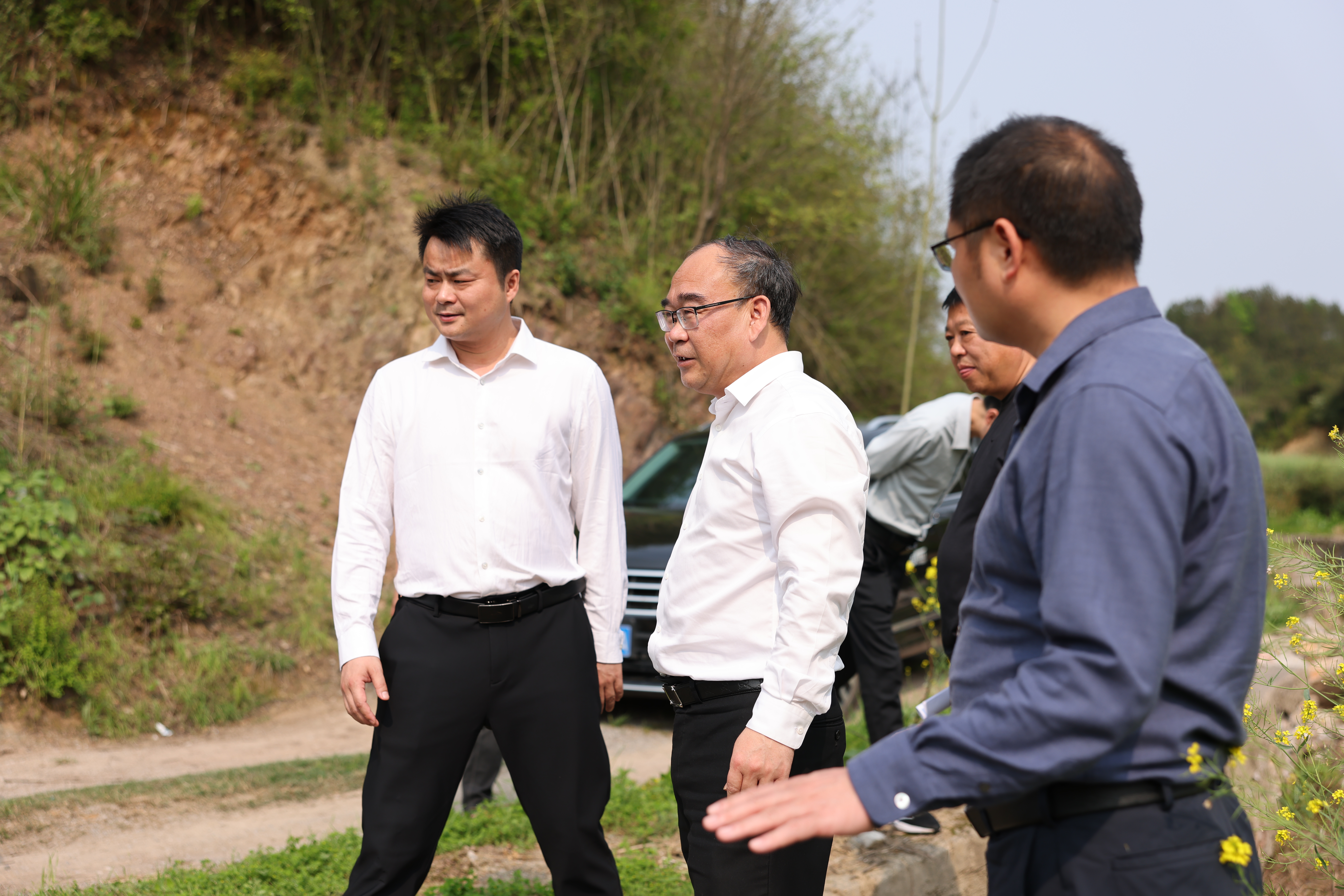 4月8日下午,县委书记杨波组织相关部门深入枫林镇、木港镇,专题调研高标准农田建设专项整治工作。副县长虞润卿参加调研。