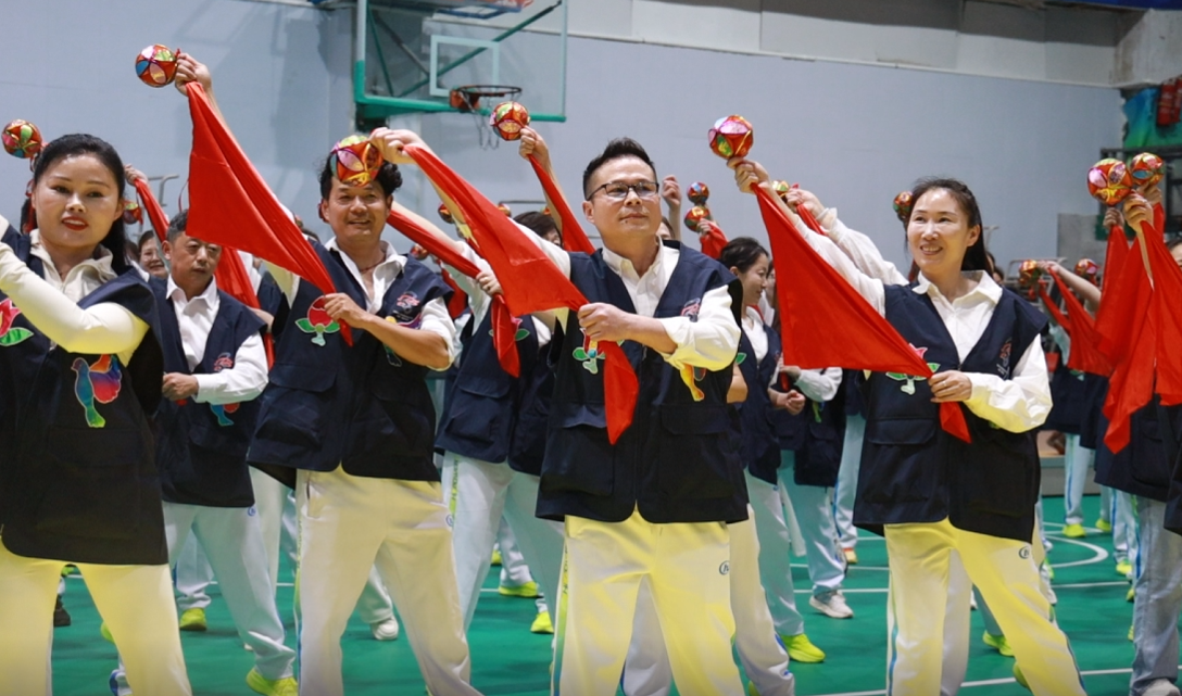 10日晚,阳新县文化宫体育馆内曲韵悠扬、彩球翻飞。由100名市民组成的阳新非遗啦啦队正在进行赛前集中彩排。这支队伍将在12日揭幕的2026年楚超联赛(黄石站)赛场上,以阳新采茶戏小调为背景音乐、身着阳新布贴元素服装、手持县级非遗抛彩球,用独特的“非遗组合拳”为黄石队加油助威,向全省观众展示阳新深厚的文化底蕴与蓬勃的城市活力。